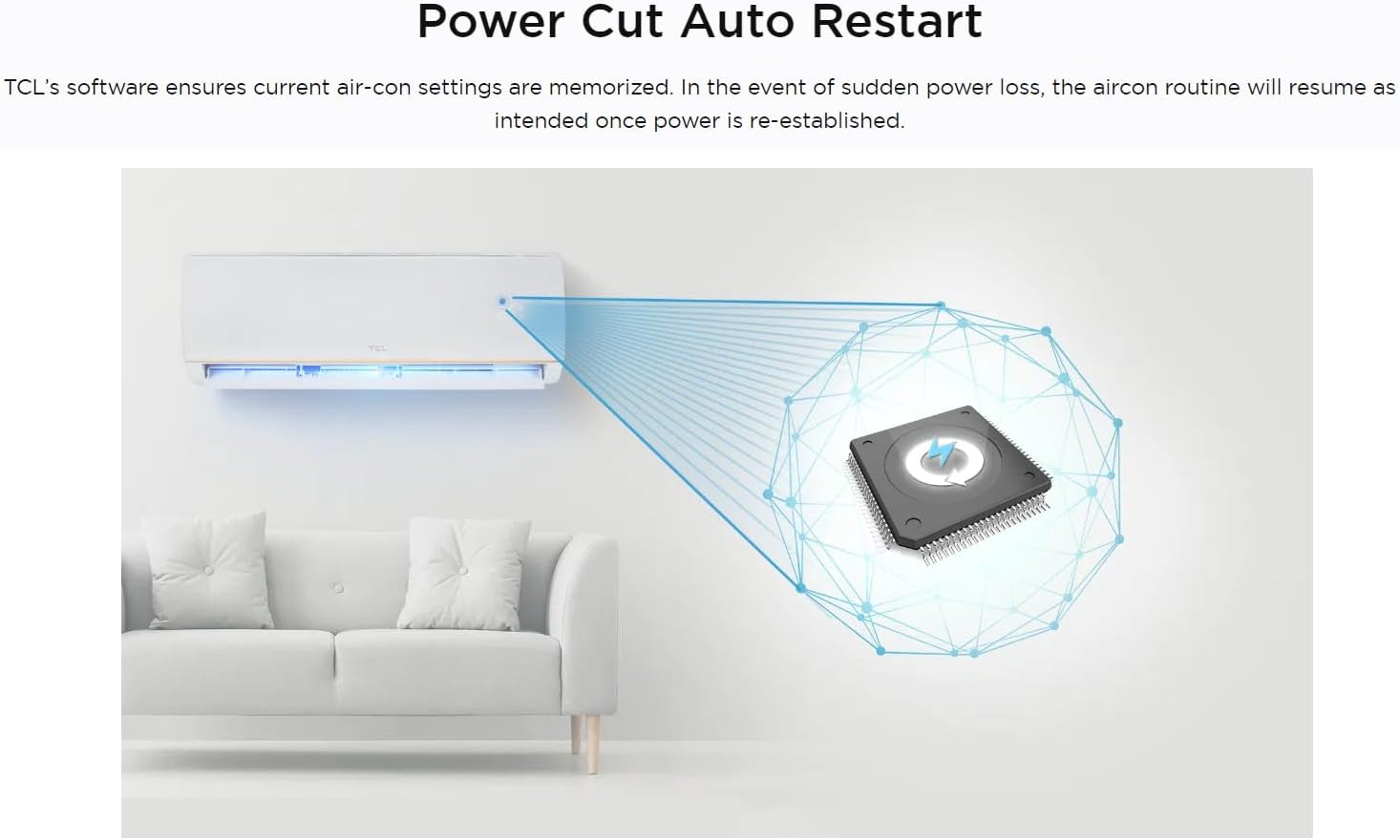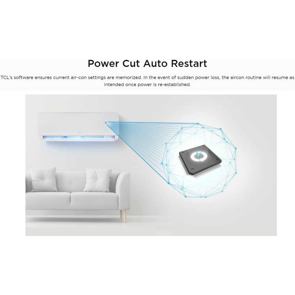 Key Features: TCL 24000 BTU Wall Split Air Conditioner TAC-24CSA/XA41, Rotary Compressor AC, T3 Tropical, R410A Gas, Fast Cooling, Gold Fin, 4 Way Airflow, Sleep Mode. Eco Mode · Sleep Mode · Safety First Design · Power Cut Auto Restart · 5 Speed Refreshment