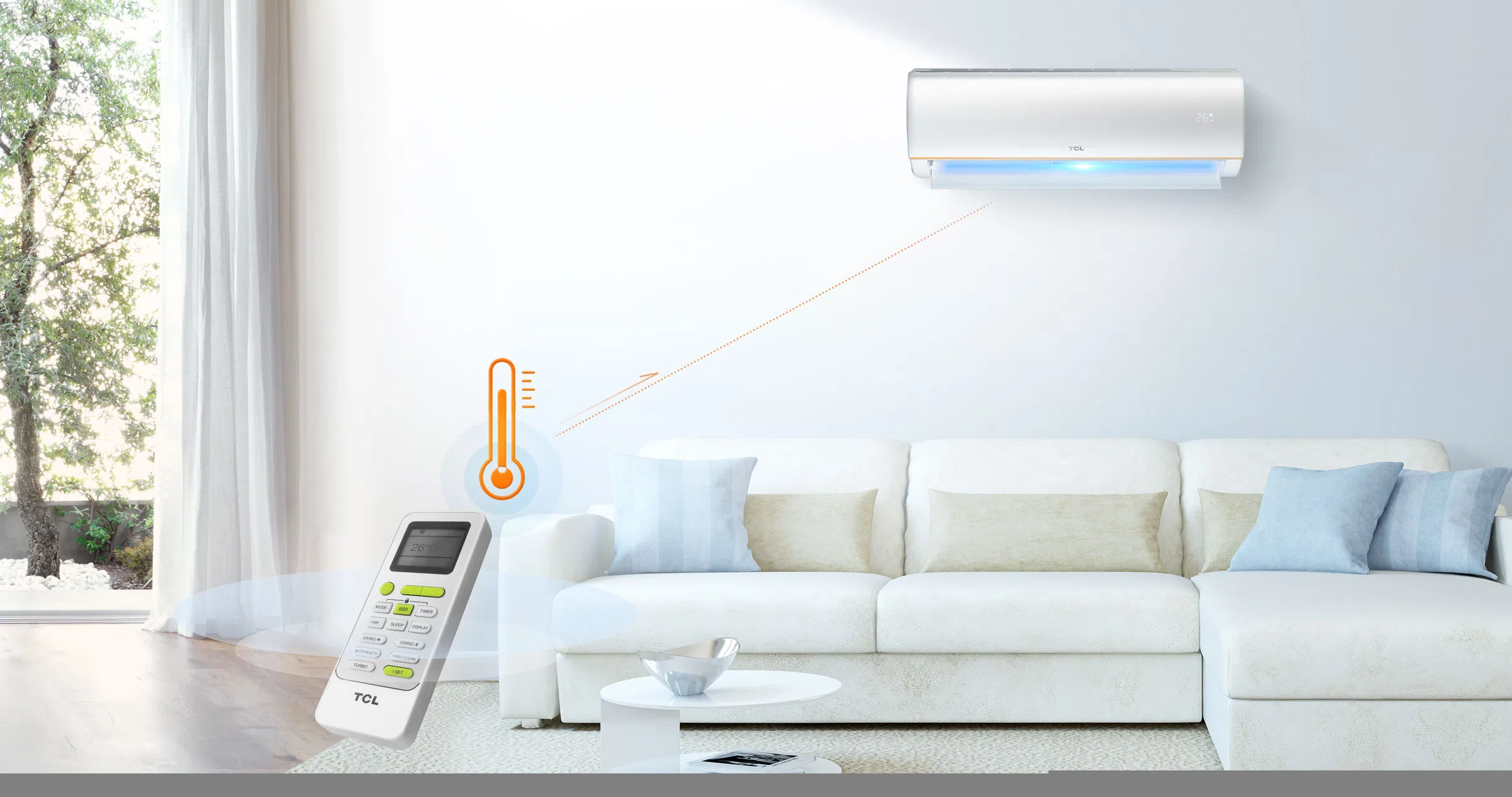 TCL 24000 BTU Wall Split Air Conditioner TAC-24CSA/XA41, Rotary Compressor AC, T3 Tropical, R410A Gas, Fast Cooling, Gold Fin, 4 Way Airflow, Sleep Mode. I Feel iFeel mode enables environmental temperature to be taken directly via a sensor built into the remote. Relax in more comfort, with high precision in-room readings and air delivery.
