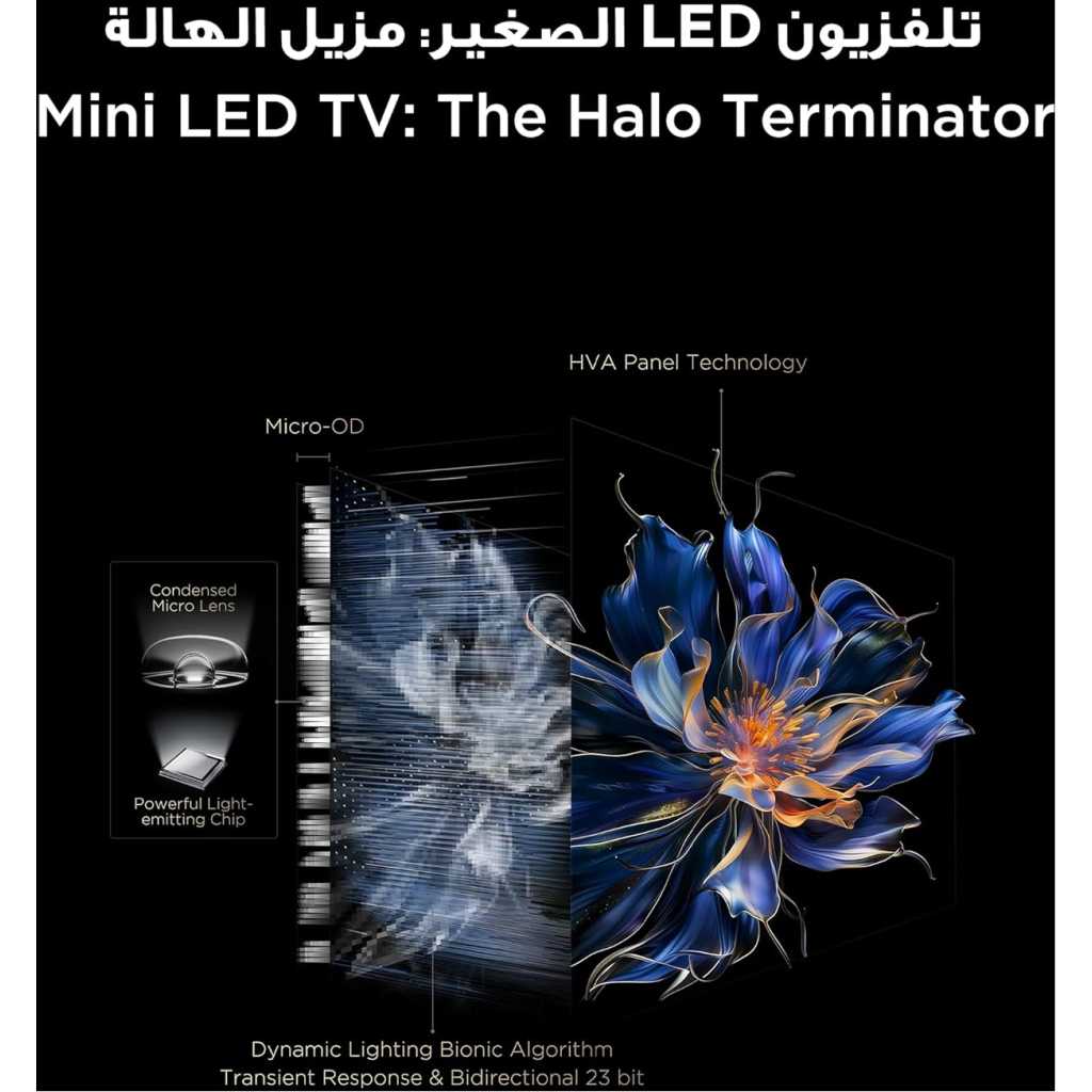 Key Features: TCL 98 Inch Smart TV 4K QD-Mini LED 98C7K (2025 Model). QD-Mini LED TV: Precise Dimming Series Up to 2880 Zones, More than a billion hues of perfect vivid color. HDR 3000nits: Blazing 3000-nit peak brightness for the most stunning HDR experience ever. 144Hz Native Refresh Rate: Unleash ultra-smooth motion with 144Hz Native Refresh Rate. Whether gaming or watching fast-action scenes, enjoy seamless fluidity and clarity that brings every frame to life. Audio by BANG & OLUFSEN: Indulge in premium sound with Audio by BANG & OLUFSEN. Immerse yourself in cinematic audio that perfectly complements the stunning visuals, delivering rich, clear, and dynamic sound. CrystGlow HVA Panel: 5x Contrast Enhancement, Low Reflection Film, >178° Viewing Angle, Energy-efficient.