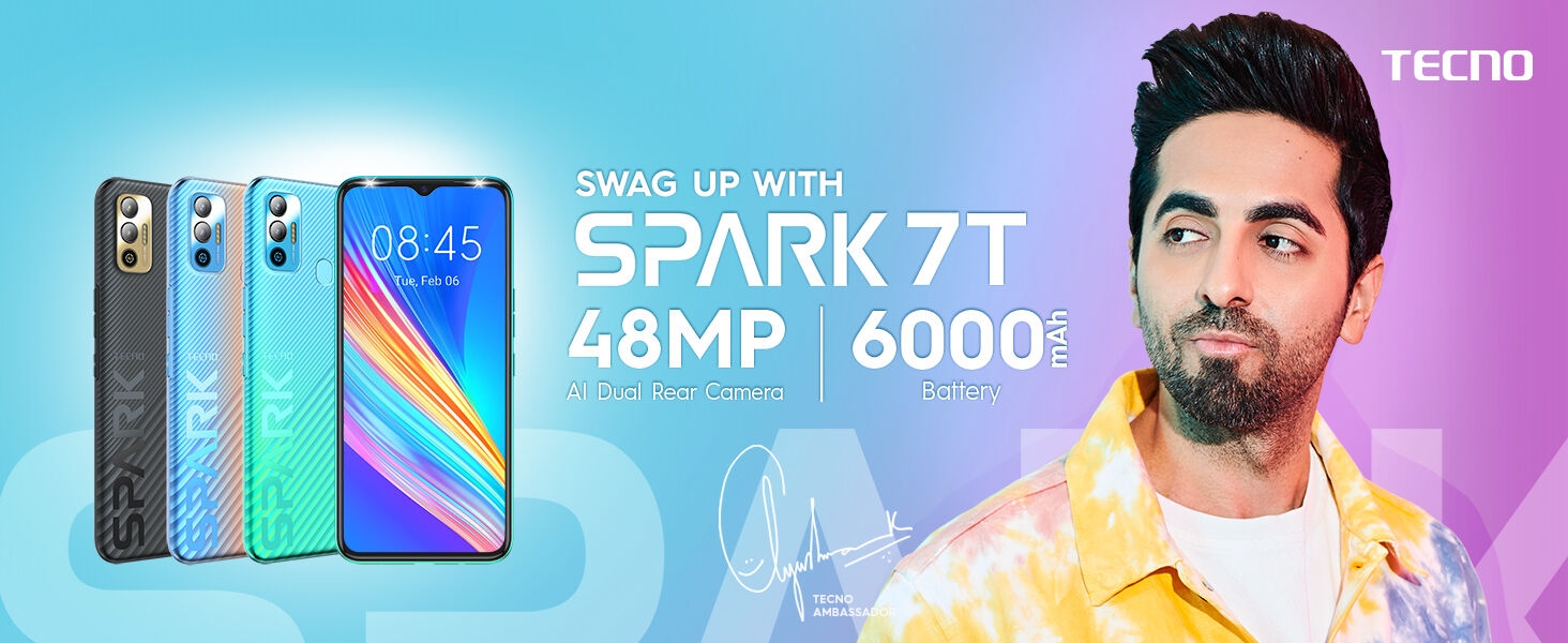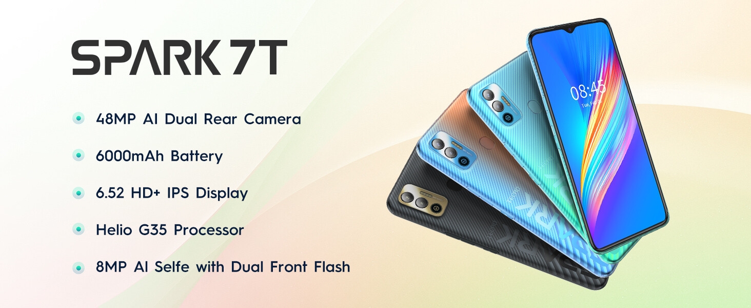 Tecno Spark 7T(Jewel Blue, 4GB RAM, 64GB Storage) 6000 mAh Battery- 48 MP AI Dual Rear Camera Key Features: OS: ‎Android 11, HiOS 7.6 RAM: ‎4 GB Product Dimensions: 16.5 x 7.6 x 1 cm; 205 Grams Batteries: 1 A batteries required. (included) Connectivity technologies: WiFi Bluetooth;USB GPS: GPS,Beidou,GNSS, Galileo Special feature: ‎Dual SIM, Expandable Memory, Dual Camera, Fingerprint Sensor, LTE Display technolog: ‎LCD Colours displayed: ‎HD+IPS display – 90.3% screen Other display features: ‎Wireless Device interface – primary: Touchscreen Other camera features: Dual Rear Camera (48MP+ 2MP) – 8MP Front Camera