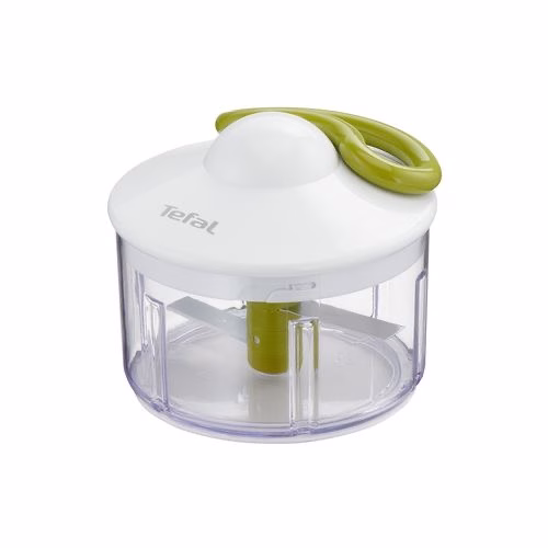Tefal 5seconds Manual Chopper K1330404 – 500ml- White and Green Chop ingredients in no time for healthy, homemade meals – fast No-fuss food prep Healthy eating just got a whole lot easier, thanks to the Tefal 5 Second Chopper. This clever manual chopper chops fruit, vegetables, boneless meat, herbs and nuts in seconds. Simply place your ingredients in the bowl, attach the lid and pull the handle. This triggers the two independent rotor blades at speed for faster chopping – no electricity needed! These ultra-resistant, stainless-steel blades will chop food to any size, quickly and easily. Dice onions, tomato and herbs for salsa in seconds. Slice meat, carrots, celery and potatoes for a chunky stew. Or crush walnuts for a final flourish to that homemade coffee cake. The more you pull, the finer the chop – just keep an eye on the size through the crystal-clear bowl. The soft-touch ergonomic handle makes it incredibly comfortable to use, the lid locks on for safety and the non-slip base keeps the chopper firmly on your worktop. With a 500ml capacity, the 5 Second Chopper is perfect for your meal prep. Plus, it’s a breeze to clean: rinse the lid in the sink then pop the bowl and blades in the dishwasher. Descriptions Time saving: Just pull the handle- This spins the blades at speed, chopping fruit, vegetables, boneless meat, herbs and nuts in seconds. No electricity needed! Efficient: The two ultra-resistant stainless-steel blades chop any kind of food and work independently for more efficient results. Customised results: The number of times the handle is pulled determines how coarsely or finely food is chopped. The crystal-clear bowl lets you monitor chopping size. Safety first: With a soft-touch handle for comfortable chopping, locking lid for safety and non-slip base for stability. Easy cleaning: The 500ml sized bowl and blades are dishwasher friendly, while the lid can be washed quickly in the sink. Capacity (ml) 500 ML Essential blade (to chop) S Blade material STAINLESS STEEL Locking system S Anti-slippering base S Automatic rewind S Non electric power S Lid cover S Handle Color White/Dark Citronnelle