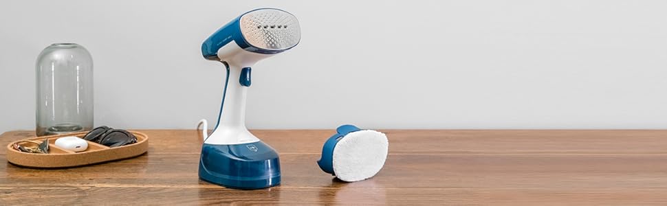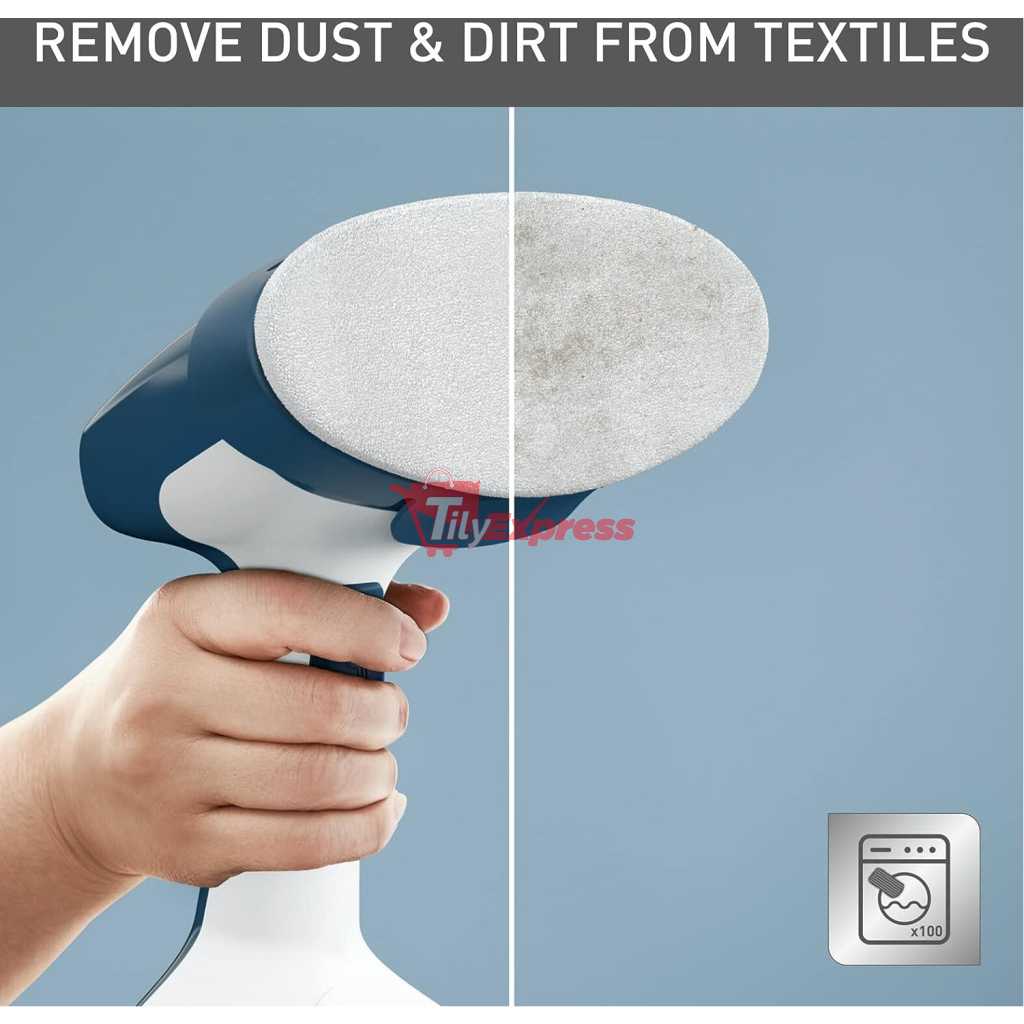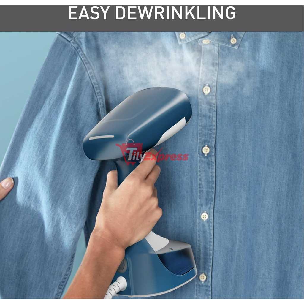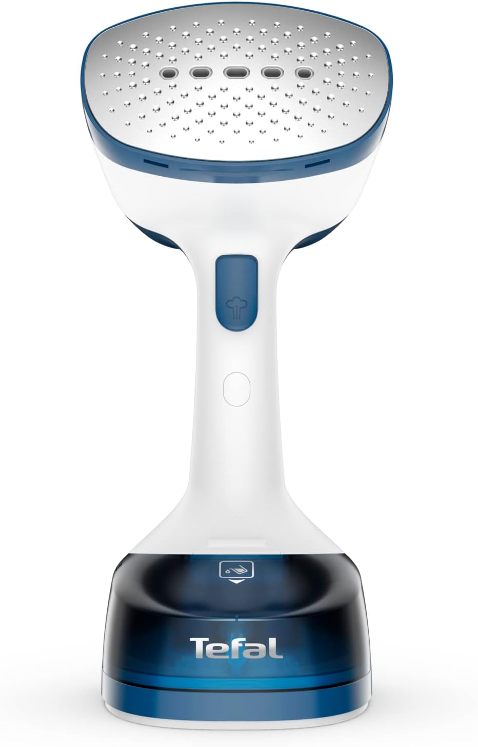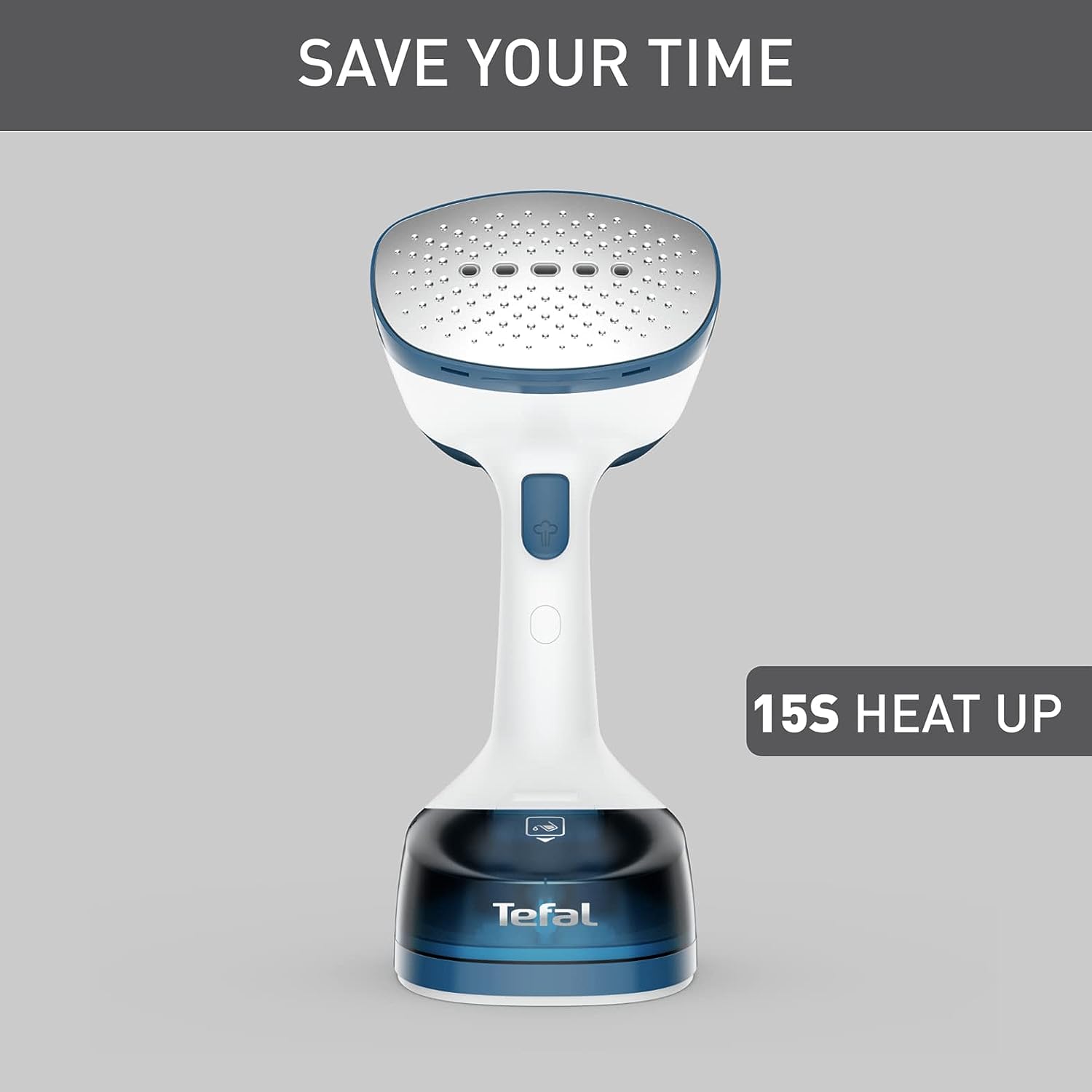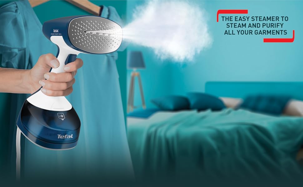 Key Features: Tefal Access Steam Easy Handheld Garment Steamer, 1400 W, Steam Output Up to 25 g/Min., Rapid 15-Second Heat-Up, Sanitizing, Light, Door Hook, DT7130G0. EASY AND QUICK WRINKLE REMOVAL: A powerful and highly efficient handheld steamer with 1400 W power and steam output up to 25 g/minute SAVES TIME: Ready in no time with a 15-second heat-up time, to keep you looking your best day after day REFRESHED NATURALLY: The natural power of steam refreshes your clothes and reduces odors for a fresh feeling FRESHENS UP TEXTILES: Use your garment steamer and micro-fiber dust brush to freshen up and remove dust from clothing 15-YEAR REPARABILITY: Quality backed by a 15-year repairability commitment, with 100% of our products tested prior to shipment SANITIZES: Steam power refreshes, sanitizes and removes odors as it steams—eliminating up to 99.99% of viruses and bacteria for fresh garments and perfect hygiene (external tests conducted in independent laboratories, applying the device on cotton fabric and slowly steaming back and forth 3 times) COMFORTABLE AND EASY TO USE: The included door hook offers easy set up and convenient steaming anywhere you need it SAFE FOR ALL FABRICS: Safe for use on all kinds of garments, even the most delicate, such as silk