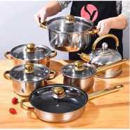 Tefal B168A574 15Pieces New Prima Cooking Set, Orange/Black, Aluminium Saucepan 18 cm with glass lid. Stewpots 24 and 30 cm with glass lid. Frypans 24 cm and frypan 28 cm. Wok 36cm. Sautepan 24 cm with glass lid. Slotted spoon. Long spatula. Laddle. Skimmer.