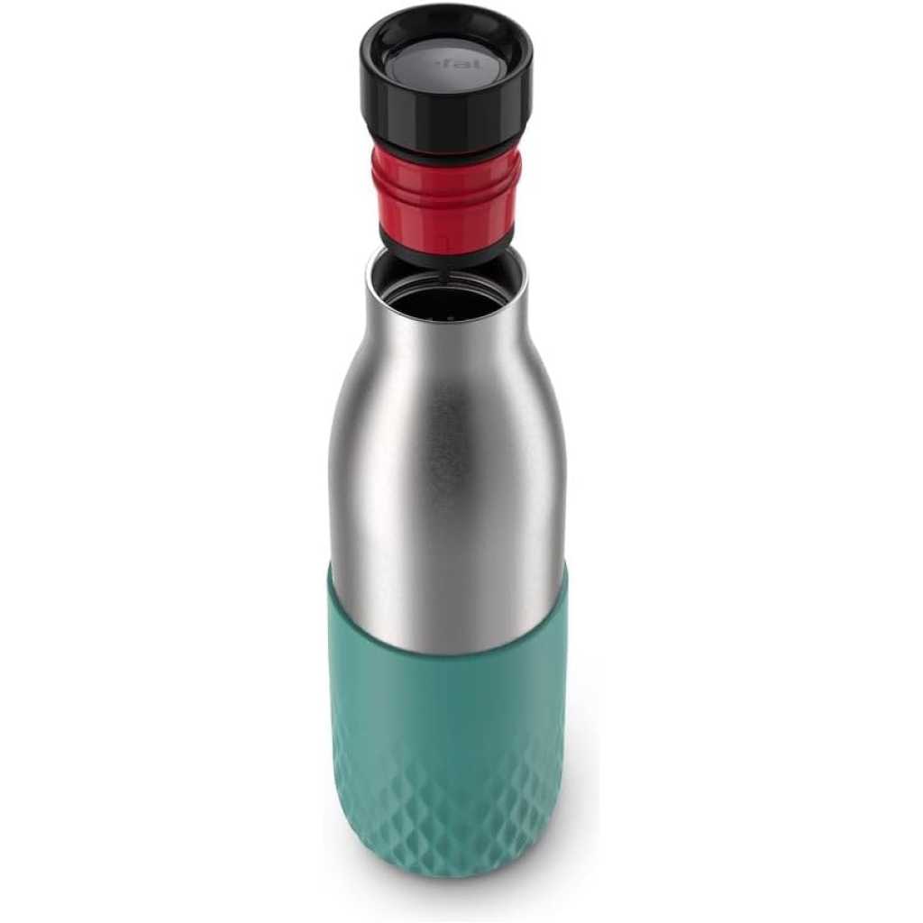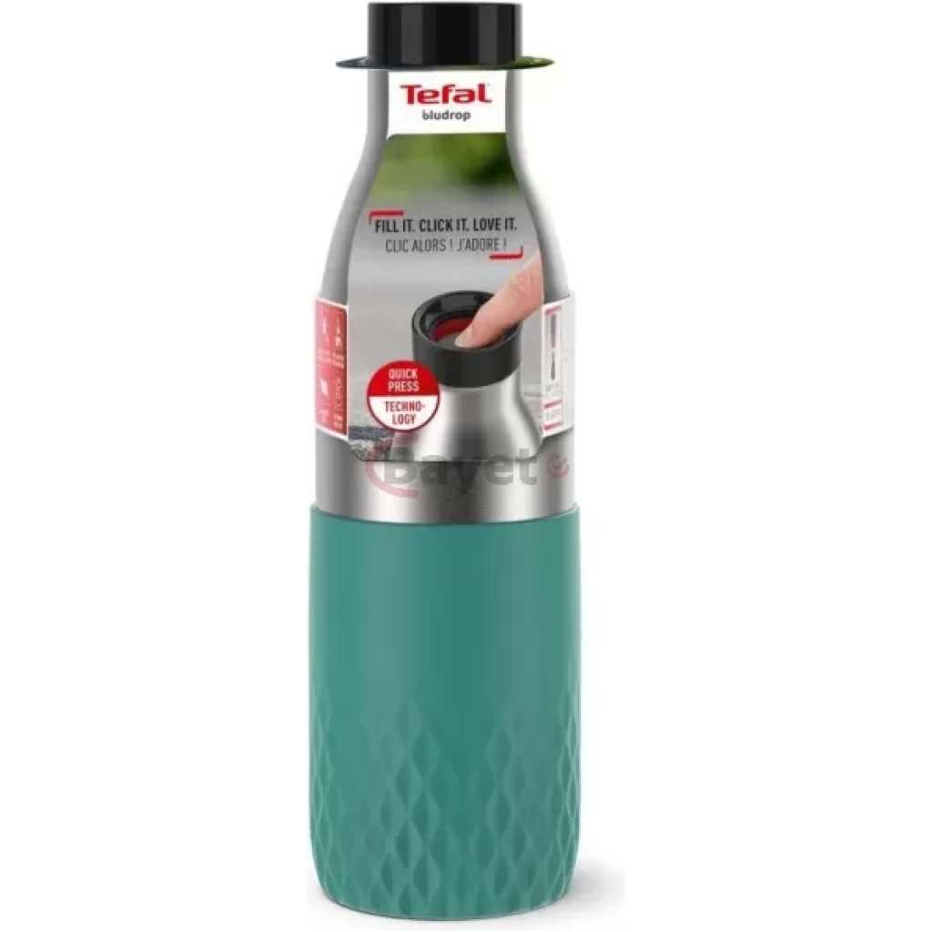 Tefal BLUDROP N3111210 Water Bottle, 0.7 L, Reusable, 18/10 Stainless Steel, Airtight, Silicone Sleeve, Ergonomic – Green. Robust and practical design: reusable water bottle made of environmentally friendly stainless steel, slim and ergonomic design, with a sturdy exterior finish with colorful powder texture. Built-in QUICK PRESS CAP: does not lose, allows one-handed opening and direct access to the drink 360° EXCELLENT TEMPERATURE CONSERVATION: Keeps warm for up to 12 hours, cold up to 24 hours Easy cleaning: 100% dishwasher safe for perfect hygiene and effortless cleaning 100% WATERPROOF: for complete peace of mind on the go FUNCTIONAL AND TRENDING: Two different sizes make it perfectly fit for all lifestyles ELEGANT & DIFFERENTIATING: won the Reddot Award Product Design 2022