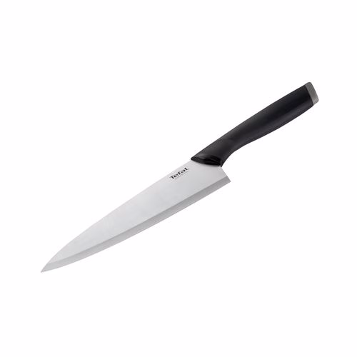 TEFAL COMFORT STAINLESS STEEL CHEF KNIFE 20cms- K2213214- Black Stainless steel chef knife 20 cm Perfectly mince, slice and chop large pieces of meat and vegetables: robust and stable! Comfort Knives’, the perfect knives to start with maximum comfortable usage! A complete assortment with both Stainless Steel and Ceramic offer. Ergonomic handle with soft touch for an optimal comfort and control of usage.High quality stainless steel Essential Comfort Knives: the perfect starter knife set! With Essential Comfort Knives, enjoy a complete assortment of knives and accessories in both stainless steel and ceramic, featuring soft-touch ergonomic handles for optimal comfort and control. High-quality stainless steel blades provide excellent cutting performance and resistance and ceramic blades offer outstanding precision, while safe blade covers protect each blade shape, for guaranteed security and easy storage. 14 products for high cutting performance: – Paring knife 9 cm (available in ceramic and stainless steel) – Utility knife 12 cm (available in ceramic and stainless steel) – Chef knife 15 cm (available in ceramic and stainless steel) – Chef knife 20 cm – Bread knife 20 cm – Slicing knife 20 cm – Santoku 12 cm (available in ceramic and stainless steel) – 4 steak knives – Cheese knife – Kitchen Shears Essentials COMFORT ZONE LONG LASTING PERFORMANCE CUTTING PERFORMANCE Features Active Part Material: Stainless Steel Dimension: 20cms Handle Color: Black+Grey – Hippo Type: Chef Comfort Knives’, the perfect knives to start with maximum comfortable usage! A complete assortment with both Stainless Steel and Ceramic offer. Ergonomic handle with soft touch for an optimal comfort and control of usage.High quality stainless steel FAQ WHERE CAN I DISPOSE OF MY APPLIANCE AT THE END OF ITS LIFE SPAN? Your appliance contains valuable materials which can be recovered or recycled. Leave it at a local civic waste collection point. WHERE CAN I BUY ACCESSORIES, CONSUMABLES OR SPARE PARTS FOR MY APPLIANCE? Please go to the “ Accessories ” section of the website to easily find whatever you need for your product. WHAT ARE THE GUARANTEE CONDITIONS OF MY APPLIANCE? Find more detailed information in the Guarantee section of this website.