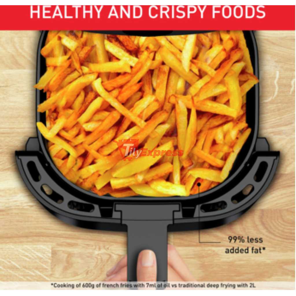 Key Features: Tefal EasyFry 3.5-Litres Air Fryer EY130840; Essential Oil-Less Fryer – Black. 3.5L Air Fryer. Fast & Energy Efficient Versatile cooking Hot Air Technology Dishwasher safe parts