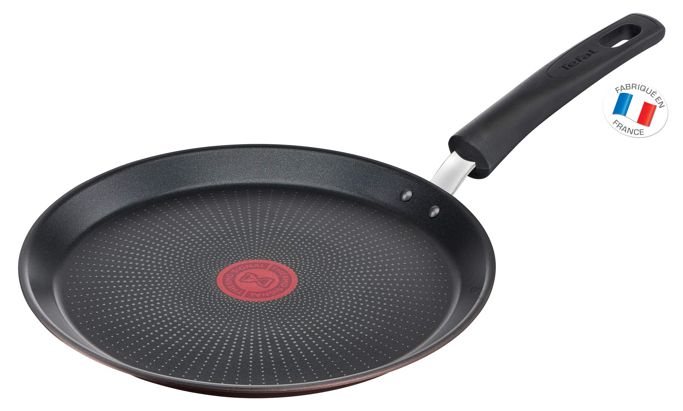 Tefal ECO-Respect Non-Stick Crepe Pancake frying Pan 25 cm B3041002 Pioneer in circular economy, Tefal® has always taken measures to protect the environment. With Eco Respect, we go even further: the body of the pan is made from 100% recycled aluminium. Recycled aluminum requires up to 95% less energy in its manufacture than new aluminium, with uncompromising quality and innovation: Titanium Pro lasts twice as long and ensures long-lasting performance, with a non-stick coating inside and out for effortless cleaning. Thermo-SignalTM technology indicates the ideal start temperature for perfectly golden and tasty pancakes, while the Thermo-FusionTM base ensures optimal heat distribution for even cooking. Discover the essential Eco-Respect pancake pan, ideal for delicious golden pancakes, thanks to a large cooking area, it is designed to provide impeccable and grease-free cooking thanks to a high quality non-stick surface for healthy results without compromising on taste. And because we all do more to protect the planet, recycle your kitchen utensils!