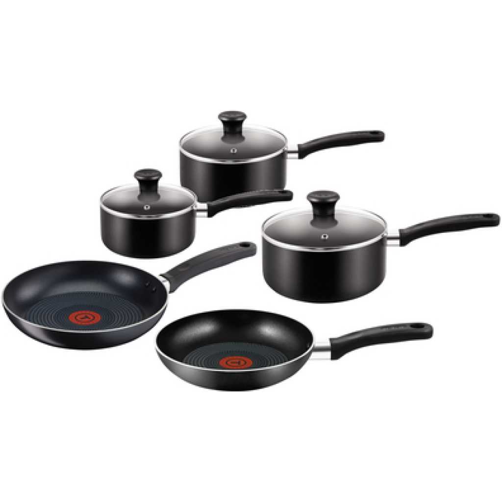 Key Features: TEFAL Essential Non-stick 5 Piece Cookware Set B472S544. New generation Thermo-Spot® tells you when pan is at optimum cooking temperature for perfect cooking Resist Plus durable non-stick coating provides long-lasting scratch protection and optimum glide over time Durabase technology offers even heat distribution and is suitable for all hobs (except induction) Bakelite handle that provides a comfortable and secure grip – oven safe up to 175°C Aluminium for optimum heat conductivity Dishwasher safe