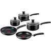 Tefal Essential 5 Piece Set Tefal introduces the Essential set, combining all the benefits of Tefal aluminium non-stick with the patented Thermo-spot technology. The Tefal Essential set comprises of 3 x Sauce pans and 2 x Frying Pans. A set that contains all you need for all your cooking endevours. What’s more, with an Expert Non-stick coating, cooking is quick and Easy. The handles have been designed for a solid and comfortable grip. Tefal has launched this set to meet the needs of every kitchen. Its pots and pans are essential for everyday use. Aluminium cookware is very popular amongst beginners and gourmet cooks alike thanks to excellent conductivity and durability on both the exterior and interior of the product. Long-lasting and light weighted this material is easy to use for everyday cooking.