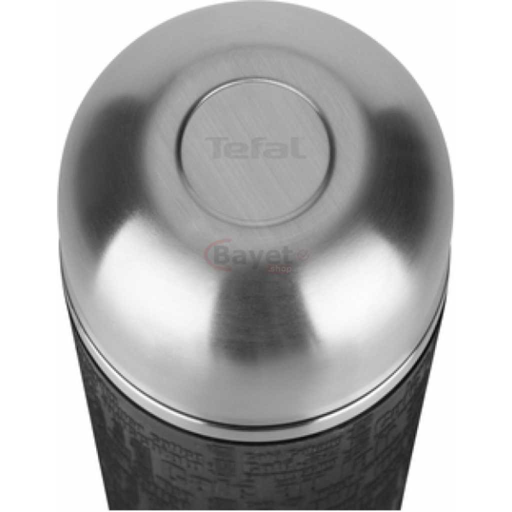 Tefal Grande Portable Leakproof Thermal Vacuum Travel Mug 0.36-Litres, 360 Drinking Edge K3081114, Hot & Cold – Black Take your favourite hot and cold drinks with you in the stylish Tefal travel mug. The 360 drinking edge lets you drink from anywhere around the rim. There’s no designated drinking hole, so no need to look down at the cup when you’re on the move. Our tried-and-trusted Quick-Press closure allows for one-handed operation: just press the button on top to open and close. When closed, the Tefal travel mug is 100% leakproof, so you can carry it in your bag without worrying about spills. It has a 0.36L capacity, so you can even fill it with your shop-bought latte, while the slim body fits most car cup-holders. The attractive embossed, soft-touch silicone sleeve ensures a secure grip on the go, while the non-slip base stops the mug from sliding around if your journey gets bumpy. Thanks to the vacuum-insulated, double-walled stainless-steel liner, drinks stay hot for up to 6 hours and cold for up to 12 hours. So, it’ll keep your coffee hot all morning and your water chilled on the way home! Plus, it’s a breeze to clean: the lid separates into two for a thorough cleanse and all parts are dishwasher safe. For peace of mind, the Tefal travel mug is made from BPA-free materials and has a five-year guarantee.