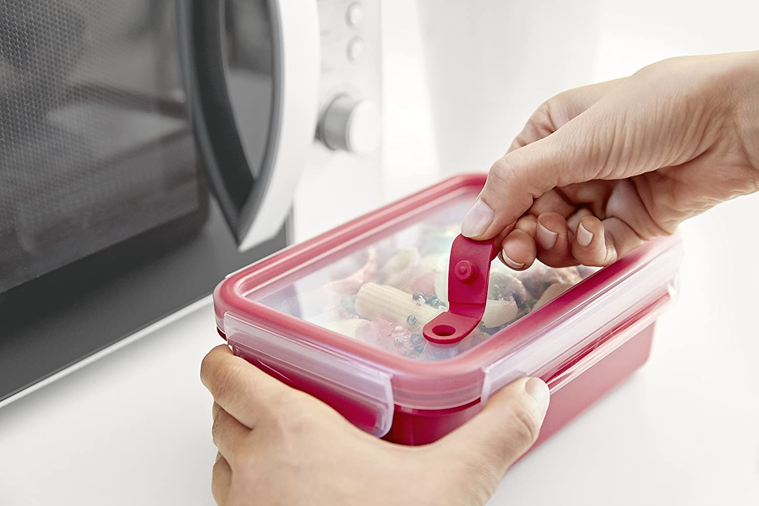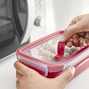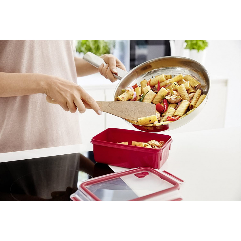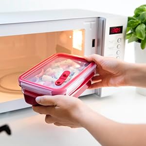 TEFAL MasterSeal Micro Box 1.2 Litre Food Container, Red, Plastic, K3102512 From the manufacturer Key Features: TEFAL MasterSeal Micro Box 1.2 Litre Food Container, Red, Plastic, K3102512 100% Leak-Proof: Preserves Freshness Longer , Simply Open The Microwave Valve And Heat Up The Meal, 100% Hygiene: No Interstices, No Microbial Proliferation 100% Safety : Without Pba – Certified Suitable For Baby Food Suitable For Freezing Microwave-Safe And Dishwasher Safe.