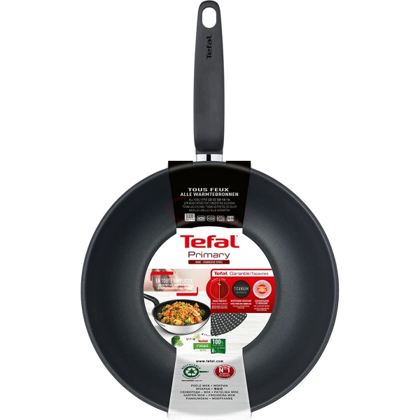 Key Features: Tefal Primary 28CM Non-stick Wok Pan E3091904. Stainless Steel With Non-stick Coating. Compatible with Smooth Surface Induction, Gas, and Electric Coil. Energy saving work pan thanks to the Thermo-Signal allows you not to waste energy. Thermo-Signal technology indicates the ideal cooking temperature to ensure perfect texture, colour, and taste. the induction base ensures even heat distribution for delicious cooking results. perfect stability and a Bakelite handle that stays cool even during cooking. long-lasting performance and reliability. Dishwasher safe. Model Number: E3091904