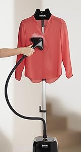 Key Features: Tefal Pro Style Upright 1.5 L Garment Steamer, 1700 W, Black/Gold, Plastic, IT3420M0 Extra large metal head for high precision and highly convenient upright steamer with no need of an ironing board Suitable for all varieties of garments, perfect for last-minute touch-ups and everyday steaming needs equipped with 1700 W of power and a continuous steam output of 30 g/minute for efficient steaming sessions Quick 45-second heat-up time equipped with removable 1,5 water tank for greater convenience 3 level of steam to fit all kind of fabrics : From the most delicate to the thickest Convenient accessory: a fabric brush for heavier fabrics and has de-calc solution for long lasting performance