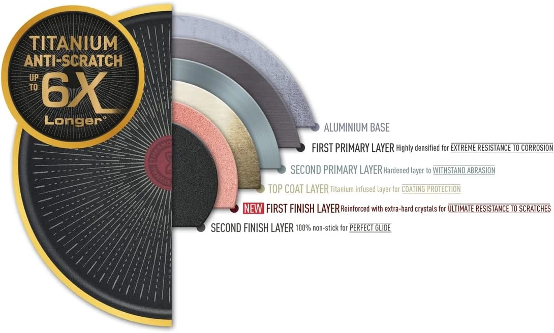 Tefal Unlimited 32cm Non-Stick Aluminium Fry Pan, Induction, G2550802 – Black. Compatible with all heat sources including induction. NON-STICK COATING: Titanium enables cleaning and easy cooking performance 100% SAFE NON-STICK COATING : 0% PFOA, 0% lead, 0% cadmium* HEAT INDICATOR: Thermo-Signal marking turns full red when the pan reaches the ideal temperature, for perfect searing results made easy SUPERIOR INDUCTION TECHNOLOGY: Fast and even cooking IDEAL FOR DELICIOUS SAUCE-BASED RECIPES: thanks to its performant non-stick.