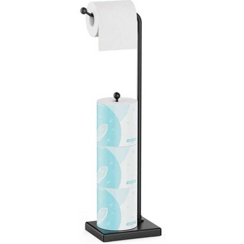 Toilet Paper Holder Stand -Black This is a high quality modern design free standing chrome toilet paper / kitchen roll holder. This product has a stylish modern design and an easy to clean wipe clean chrome finish. This product is completely free standing and does not require wall mounting. This product is lightweight and easily portable should you wish to move it around the room. This product modern design means that it can fit easily into most bathrooms and kitchen decor. High quality modern design free standing chrome toilet paper / kitchen roll holder. Has a stylish modern design and an easy to clean wipe clean chrome finish.