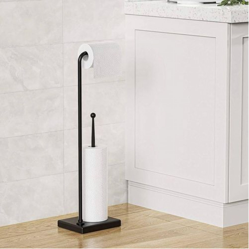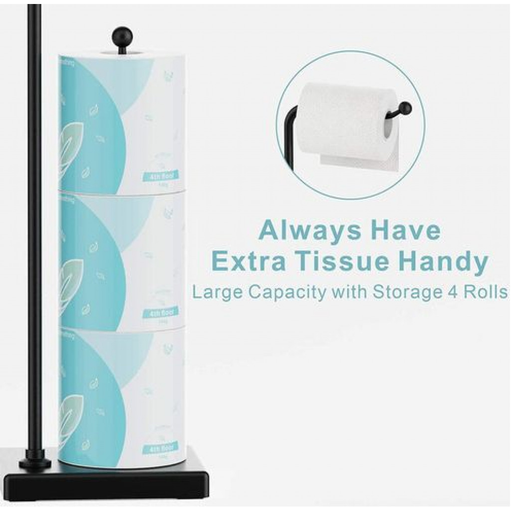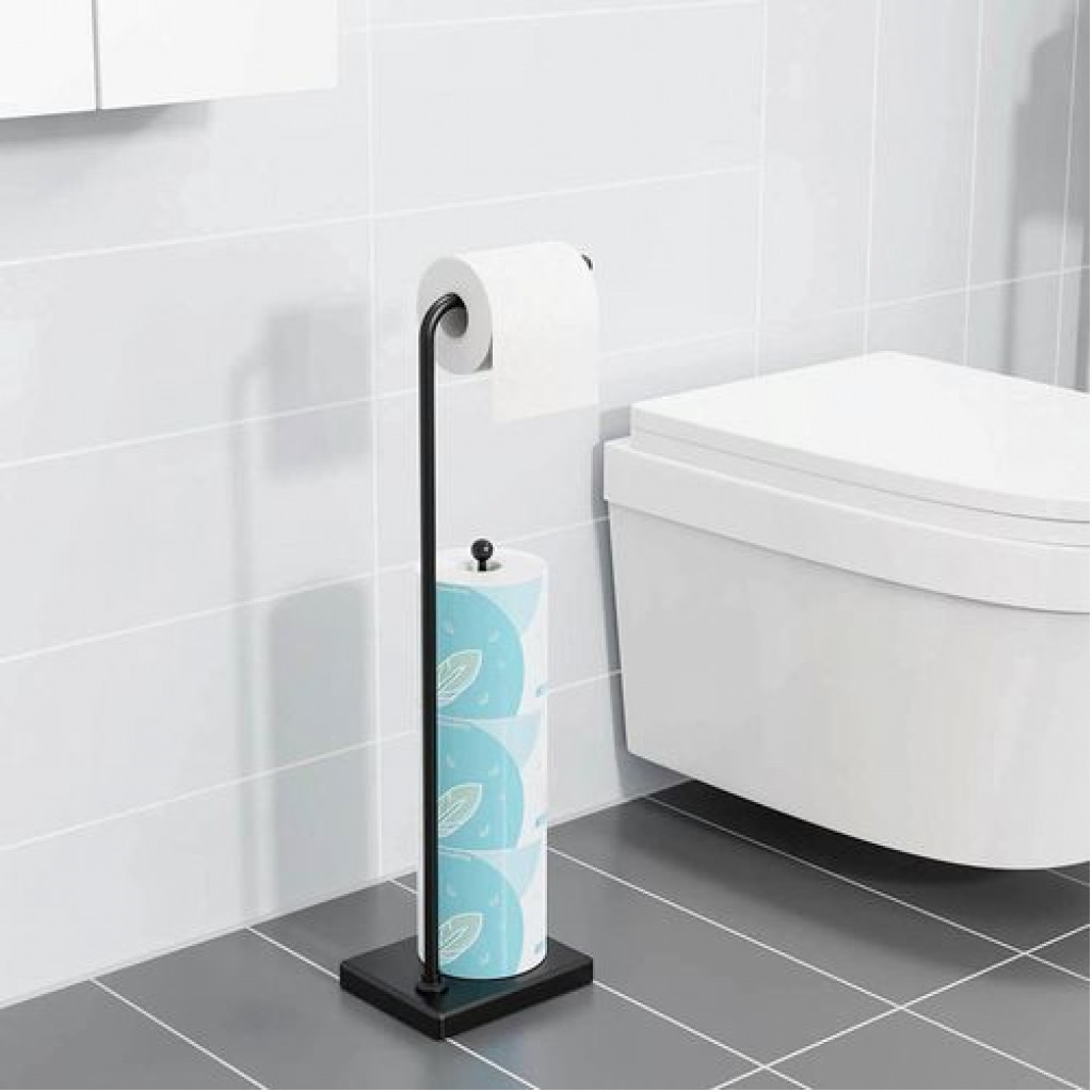 Key Features: Heavy Weighted Base for Great Stability – The black toilet paper stand is heavy enough to stay where you put it and does not tip over when tugged Versatile Use Toilet Paper Stand – Free-standing Design for any master bathroom, guest bathroom, kid’s bathroom, RV, restroom, powder room, and garage. Or use a paper towel holder for paper towel and plastic wrap in the kitchen Never Run out the Paper – This TP holder takes up little space but large capacity. “r”-shaped arm holds a single roll of paper, and the vertical pole holds up to 3 extra rolls. Elegant Bathroom Accessories – Attractive matte black surface finish with a flying ‘r’-shaped arm, this toilet roll holder is a nice addition to the bathroom, accent your space with the perfect combination of style and modern Easy to Assemble – Simple construction makes this black toilet paper holder super easy to install, just put parts together with screws. Save much time on installation