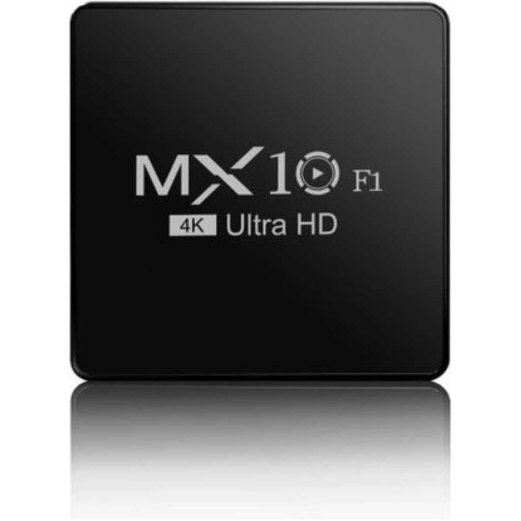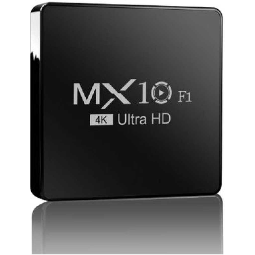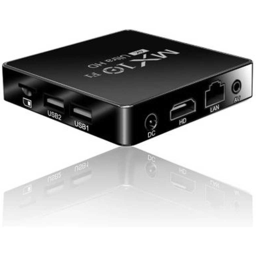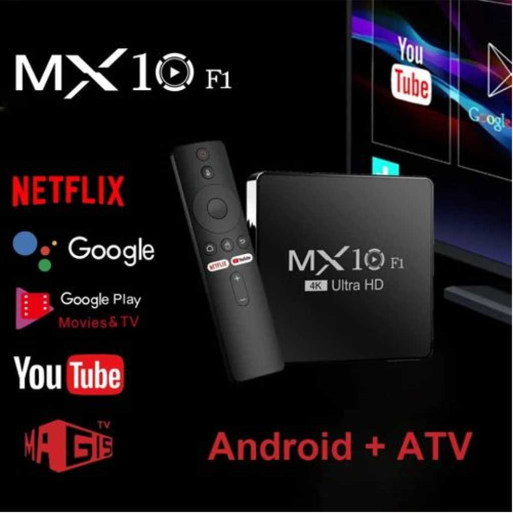 4K Ultra HD Image Quality: 4K Ultra HD realizes a more detailed and vivid image for you to immerse yourself in. 360° Bluetooth & IR Remote Control: The intuitive button layout and Bluetooth allows you to access your favorite content much quicker from any angle. Voice Control “Ok Google”: Your TV is more helpful than ever. Ask Google to find movies, stream apps, play music, and control the TV. Dolby Vision & HDR10+: A crisper image in any lighting condition. With Dolby Vision and HDR10+, images now feature a higher dynamic range, and have more amazing brightness, contrast and color than before. HDR images also have more detailed shadows and highlights. Dolby Atmos & DTS-HD: Extraordinary audio experience. As revolutionary spatial audio technology, Dolby Atmos brings the ultimate cinema experience into your living room by surrounding you with powerful sound effects, and also, DTS-HD delivers extraordinarily high-quality sound. Powerful Processor: Accelerated experience: The quad-core CPU delivers efficient performance. With high-performance GPU, the TV can now become your new entertainment platform. The 2GB RAM + 8GB ROM combo offers a smoother viewing experience. Google TV: Entertainment you love, with a little help from Google. Google TV brings together movies, shows, and more from across your apps and subscriptions and organizes them just for you. Discover new things to watch with recommendations based on what you watch and what interests you, from across your subscriptions and content available to you. MX10 Android TV Box is waiting for you with its rich contents and unique features to take your smart home entertainment systems to the next level. ; With this powerful TV box with Android 7.1 operating system, watch all kinds of multimedia content in 4K resolution, play your games on the big screen and make your television smarter with numerous applications. ; Android 7.1: Up-to-date and user-friendly operating system for a stable and fast experience; 4k resolution: Watch your movies and videos in crystal clarity with cinema-quality images; Easy installation: It is easy and fast to install with the plug and play feature; Multi-purpose use: It offers Android TV, TV box, box, TV stick and smart TV features all in one; Maximize entertainment: Bring your favorite movies, TV series and live broadcasts directly to the comfort of your living room; Gaming enjoyment: Increase your experience by playing games on a larger screen; Application support: Download and use the applications you want; Smart control: Control your TV box with your remote control or your smartphone; High connection options: Experience the best connection with HDMI, USB ports and Wi-Fi connection. What’s in the box 1 x 4K Android Wifi Smart TV Box 1 x Connect Cable 1 x Charger Cable 1 x Remote 1 x Manual