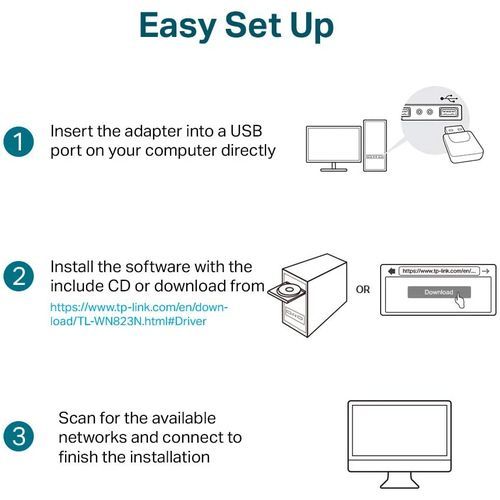 TP-Link N300mbps USB Wi-Fi network Adapter – Black TP-LINK’s 300Mbps Mini Wireless N USB Adapter TL-WN823N is designed to connect your laptop or desktop to a wireless network and enjoy high speed wireless performance. The fingertip design makes the adapter convenient and easy to carry around. What’s more, the TL-WN823N features Soft AP Mode, one-button security setup, easy-to-use configuration software, making it a great choice for enjoying fast wireless network. 300Mbps Wireless N Speed-Extend Wireless Coverage With wireless speeds of up to 300Mbps and advanced MIMO technology, the TL-WN823N provides you with a fast, reliable wireless connection for lag-free online gaming and video streaming. Better still, TL-WN823N achieves the best performance with wireless N devices, but also works seamlessly with existing IEEE 802.11b/g networks. Tiny Design Brings Infinite Convenience TL-WN823N has a smart design that is tinier than a usual USB flash disk. Not only could it be inserted into any USB port, but is quite easy to carry, which is convenient for most usage scenarios. One-Button Security With a push of the WPS button, connect the TL-WN823N to the Wi-Fi network without typing a complex password, and stay protected with reliable security.