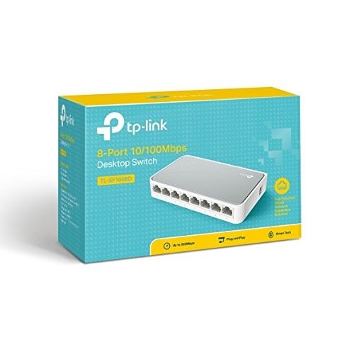 The TL-SF1005D 8-Port 10/100Mbps desktop switch provides an easy way to expand your wired network. All 5 ports support auto-MDI/MDIX, eliminating the need to worry about the type of cable to use. Featuring full duplex mode, the TL-SF1005D can process data at a rate of up to 200Mbps making it an ideal choice for expanding your high performance wired network. Moreover, with innovative energy-efficient technology, the TL-SF1005D can save up to 68% of power consumption, making it an eco-friendly solution for your home or office network. Easy to Use The auto features of this ethernet switch make installation plug and play and hassle-free. No configuring is required. Auto MDI/MDIX eliminates the need for crossover cables. Auto-negotiation on each port senses the link speed of a network device (10, 100 Mbps) and intelligently adjusts for compatibility and optimal performance. High Performance and Reliability The TL-SF1008D 8-Port Fast Ethernet Desktop Switch can process data at a rate of up to 100Mbps, making it an ideal choice for expanding your high performance wired network. Plug and Play The auto features of this Fast Ethernet switch make installation plug and play and hassle-free. No configuring is required. Auto MDI/MDIX eliminate the need for crossover cables or uplink ports. Auto-negotiation on each port senses the link speed of a network