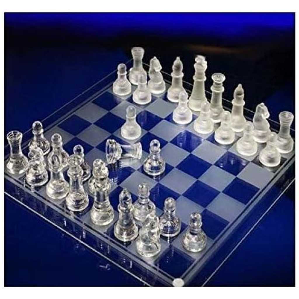 Traditional Glass Frosted Chess Boards Set With Transparent Glass Board and Frosted & Clear Crystal Pieces For Party Fun Game Gift( Puzzle Games) Family Game Night, Kids, Boy or Girl- Multicolor