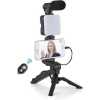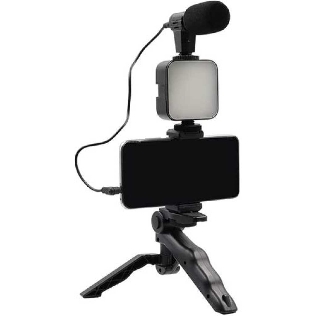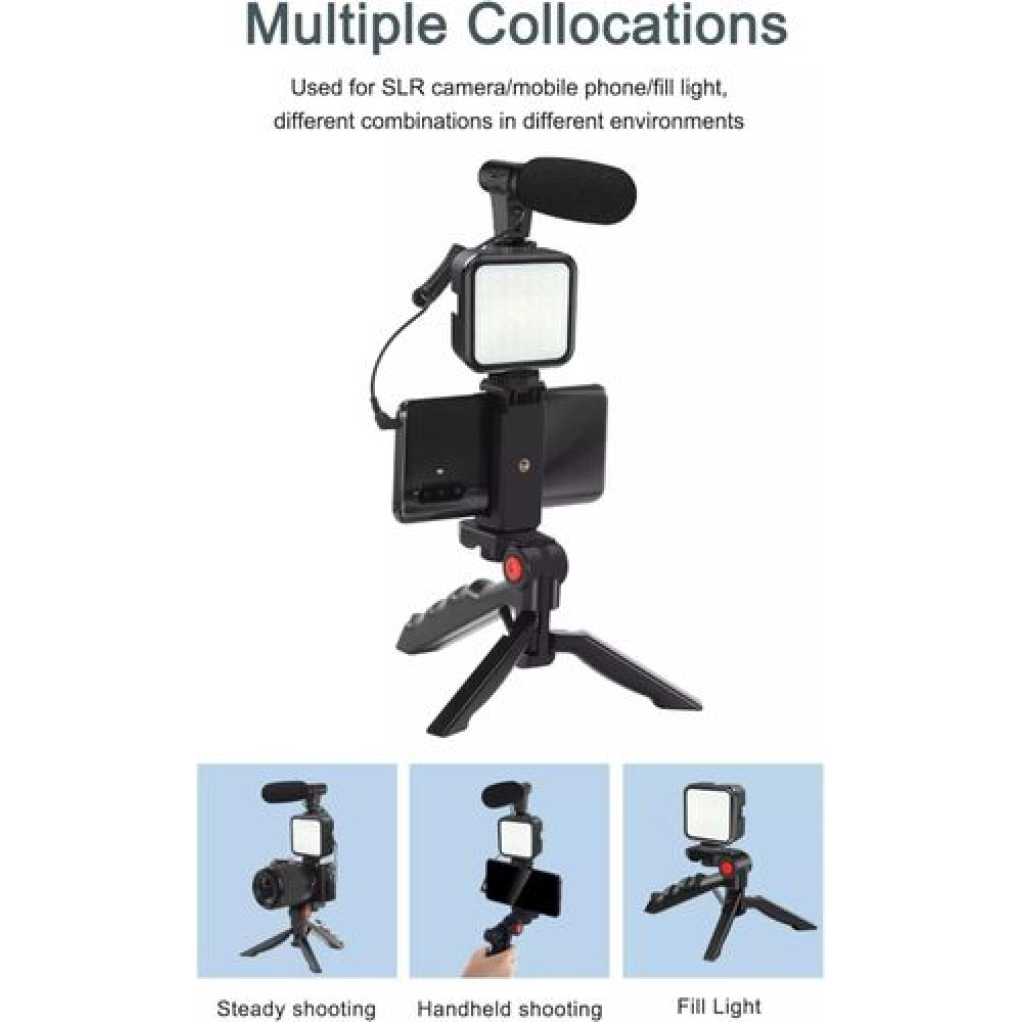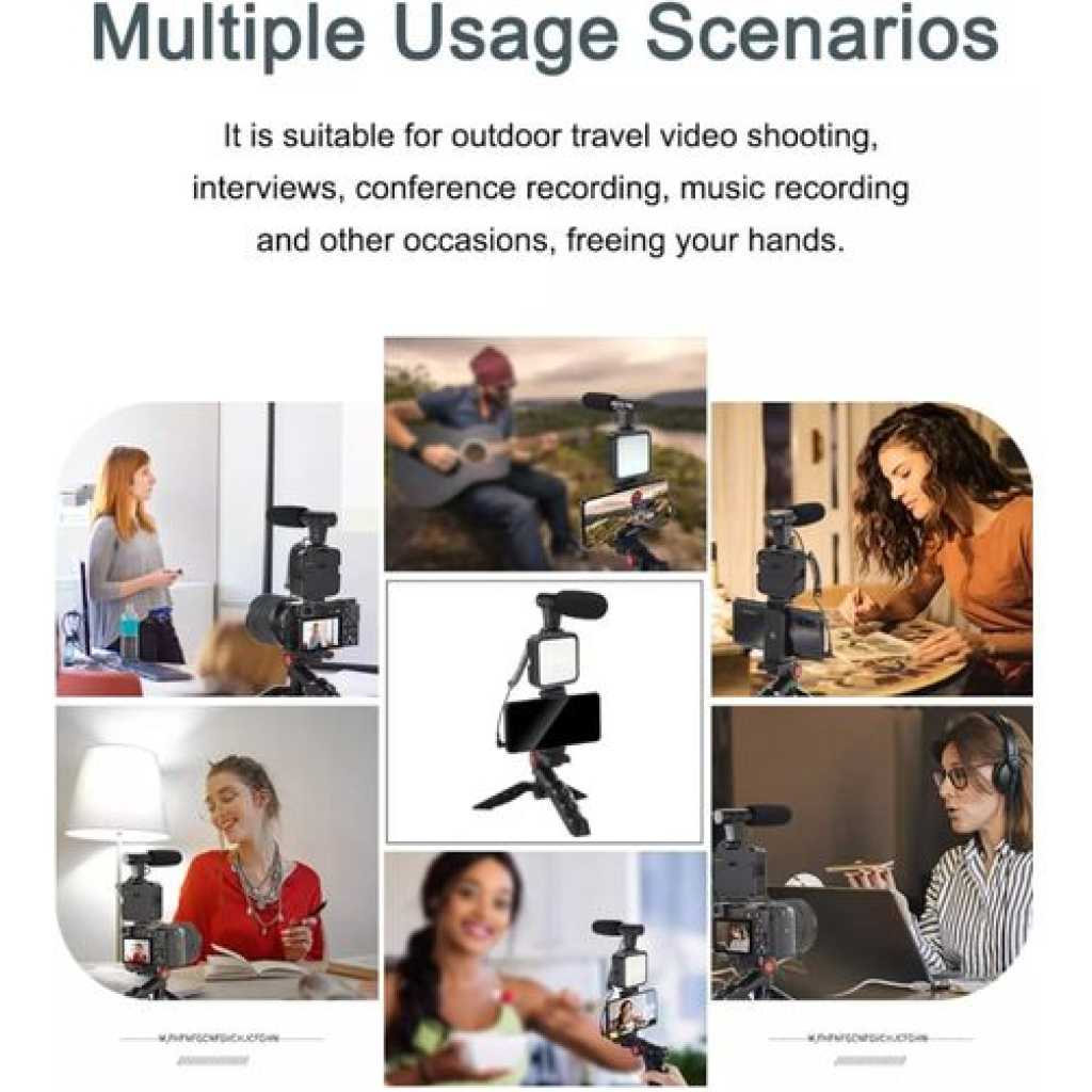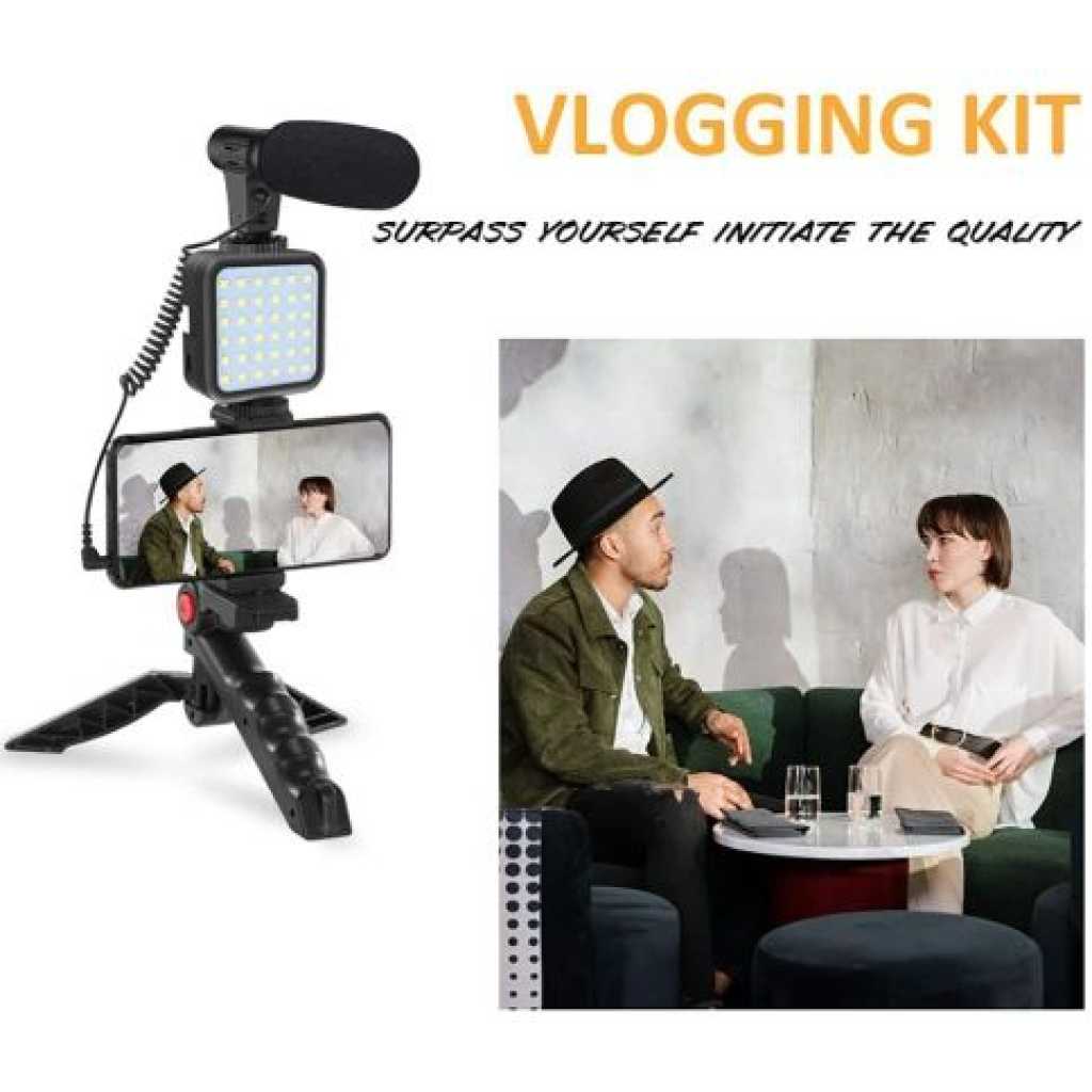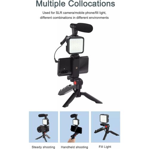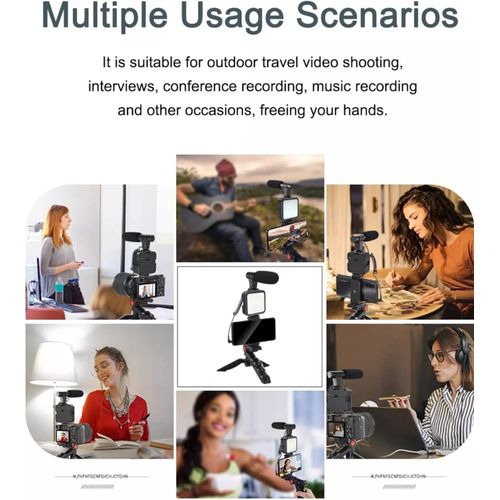 Key Features: [ Compatibility ]: works with all Smart Phones, Cameras, PC, etc [ Multiple Usage Scenarios ]: The Video Vlog Kit can be used for most of scenes, and free your hands, it is suitable for outdoors travel video shooting, interviews, conference recording, music recording & other occasions! [ Universal Tripod ]: 3KD load bearing with 1/4 inch standard screws, it can bedriectly installed with fill light, mobile phone holder, SLR camera, microphone,etc. [ Adjustable range ]: 5.5cm-8.5cm , suitable for 99% of mobile phones [ Wide Application ]: The kit is designed for smartphone video recording with 3.5mm TRRS plug microphone, universal for Vlog making, interview, live streaming, online makeup, video chatting and more. [ LED Light ]: Powered By two 1.5v AA Batteries