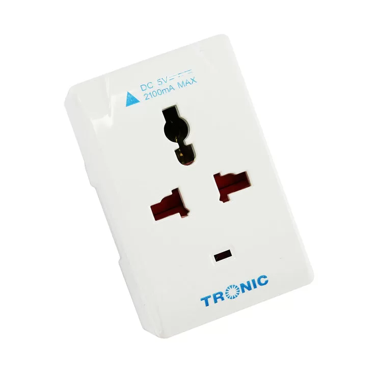 Tronic 13A multiplug allows you to plug in more than one appliance at a time with its 3 pin sockets, also has a universal type socket meaning it can fit both a round pin or the square ones. Additionally, it has two USB ports to charge your mobile devices. Additional Information Colour White Amps 13A Voltage AC 110-240 Installation Plug-in and Use Material PVC Warranty 1 Year Additional Features 2 USB ports, 3-pin universal socket Application All Domestic use