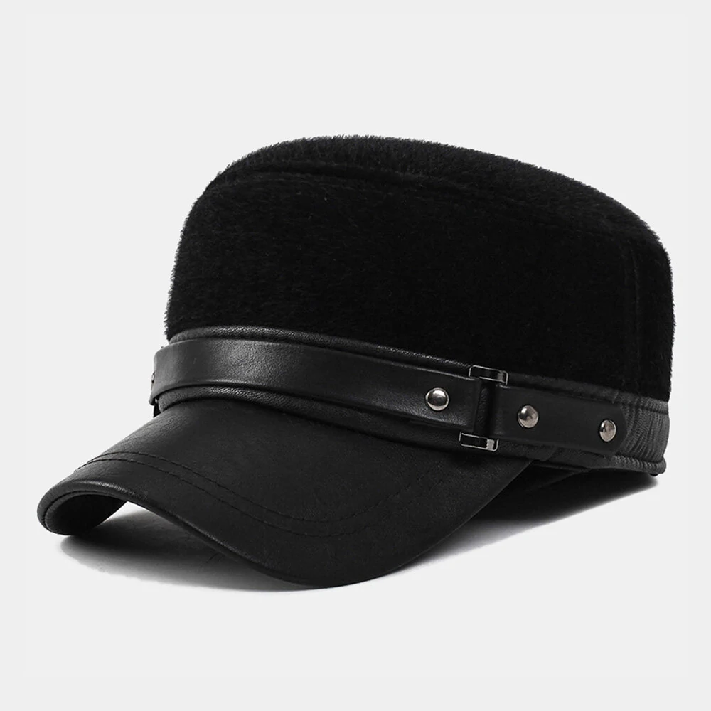 Pouze US$21.84, nakupujte Umělé kožešiny ze strůjceek PU Brim Patchwork Rivet Dekorace vestavěná ochrana uší tlustá tepla rovná čepice na Banggood.com. Nakupujte módní hats & caps online.
