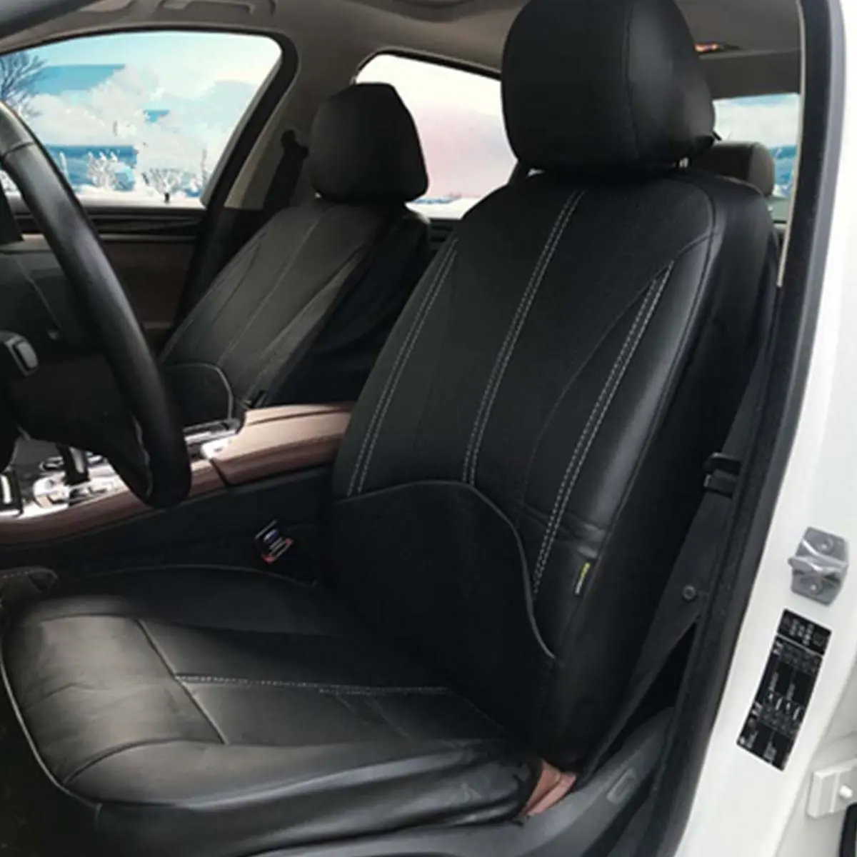 Univerzální černá sada 9 ks potahů na sedadla z PU kůže pro celkové zakrytí sedadel v autě s 5 sedadly