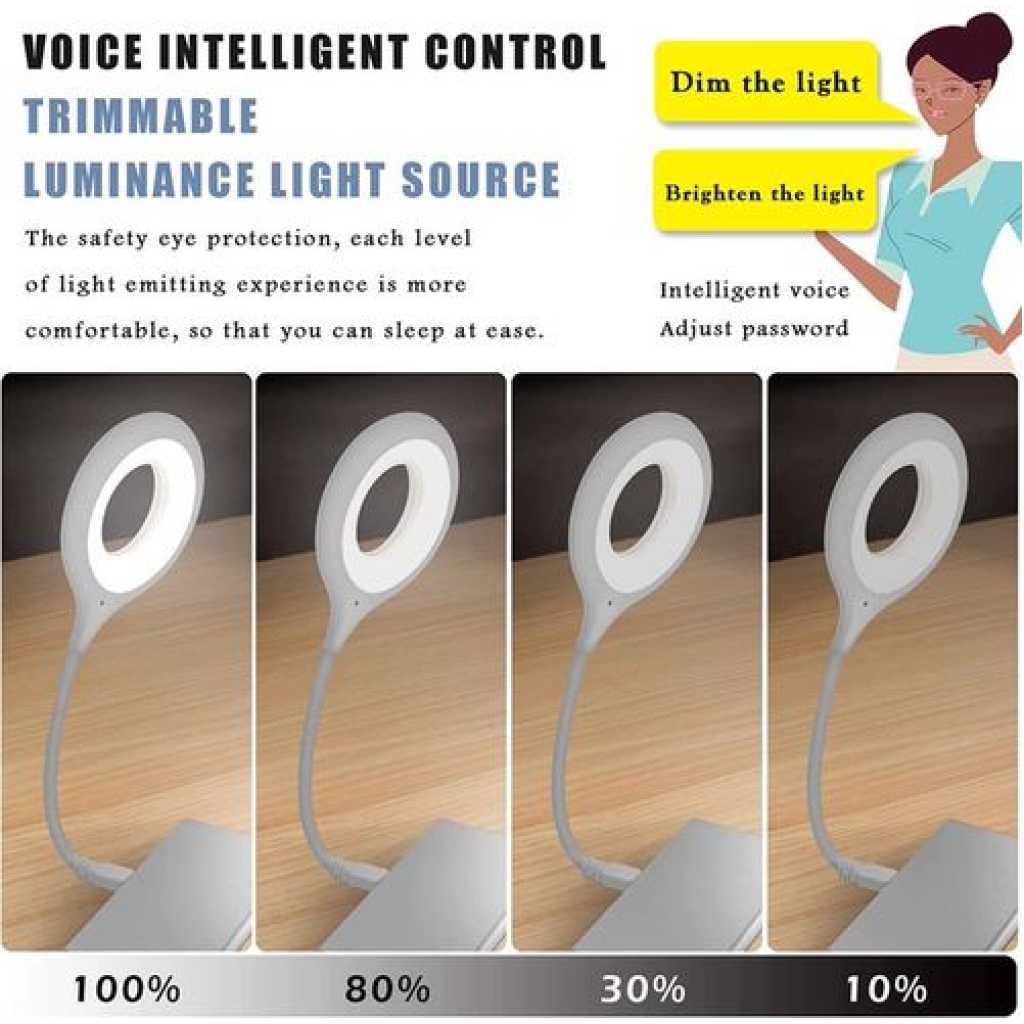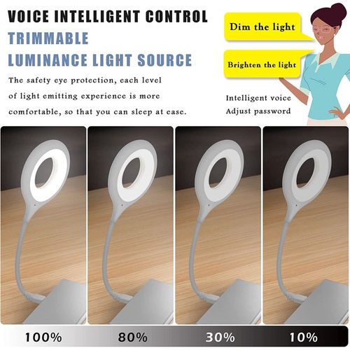 Key Features: USB Smart Voice Control Led Table Lamp For Bedroom Living Room Office Desk Lamp Intelligent Voice Night Light- White Smart: Voice control turn on/off, voice control change color (white.warm.dichromatic 3 light color mode) Easy Use: USB Plug and Play, Built-in voice control chip network Bluetooth or cell phone required. Portable: Product size 310mm(12.2inch)*83mm(3.26inch)*18mm(0.71inch), only 66g weight, body made of hose material which can be bent, Easy to carry anywhere in your pocket. Energy Saving: Led lamp only 1.5W, Don’t worry about power consumption. Voice Command: Light on(Please turn on the light, Turn on the light, I’m back), Light off(Please turn off the light, turn off the light, go out, go to sleep), Change color(Change color)