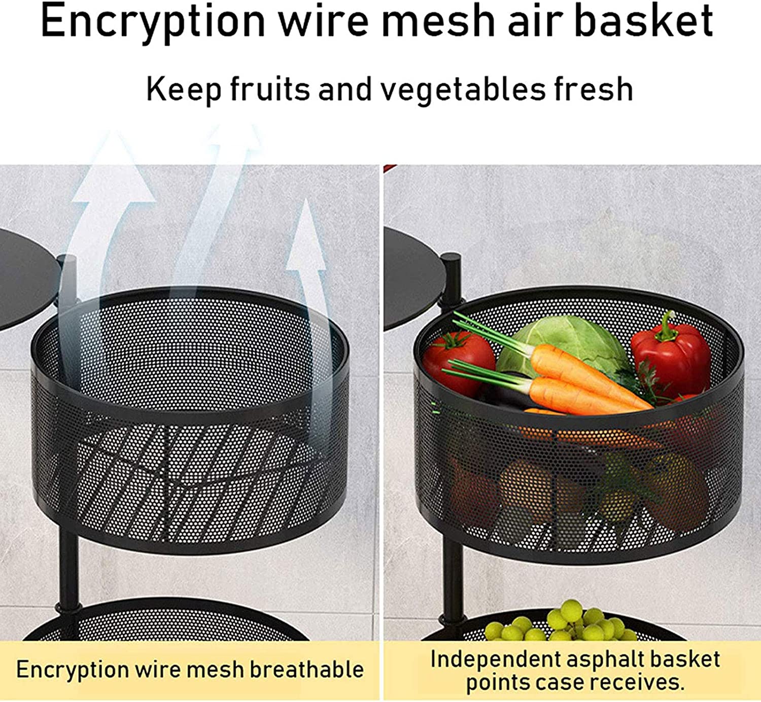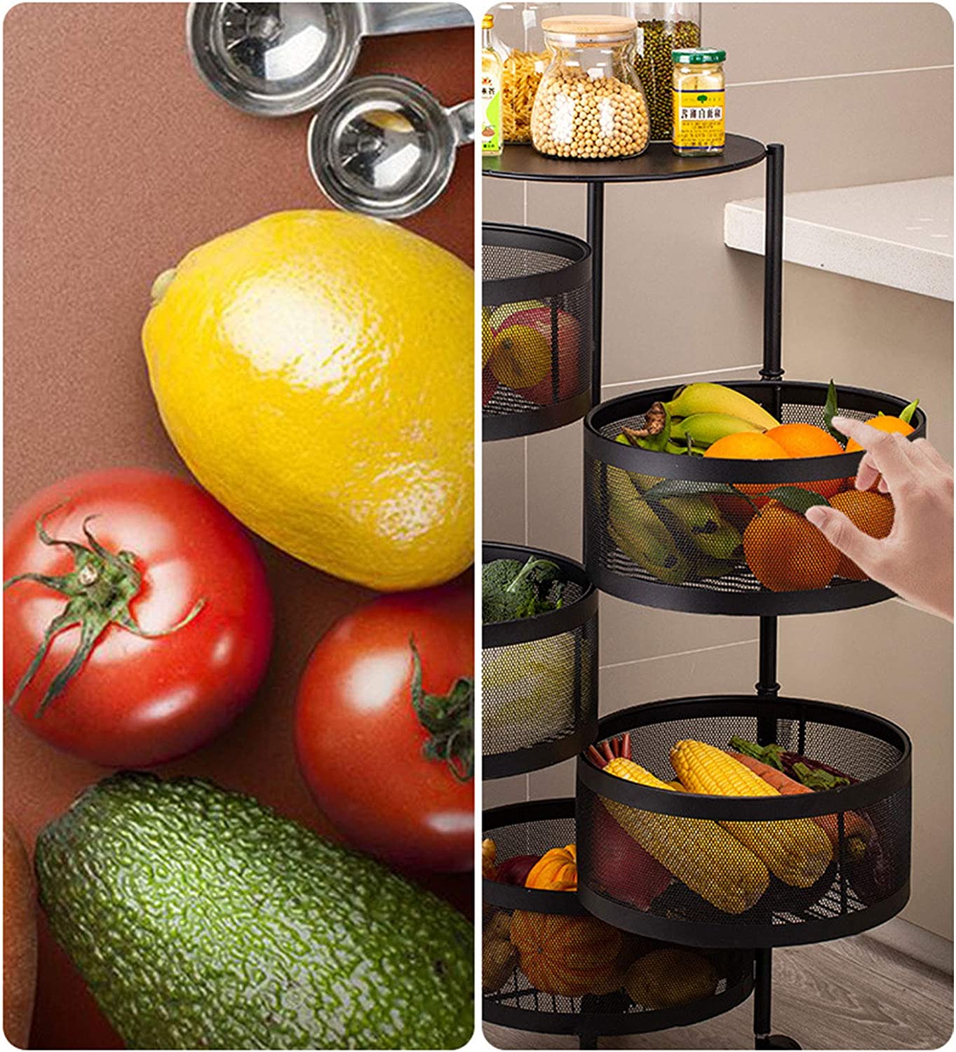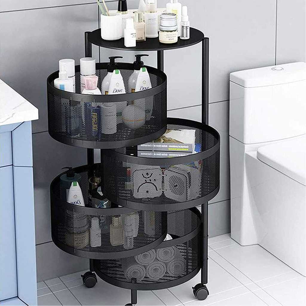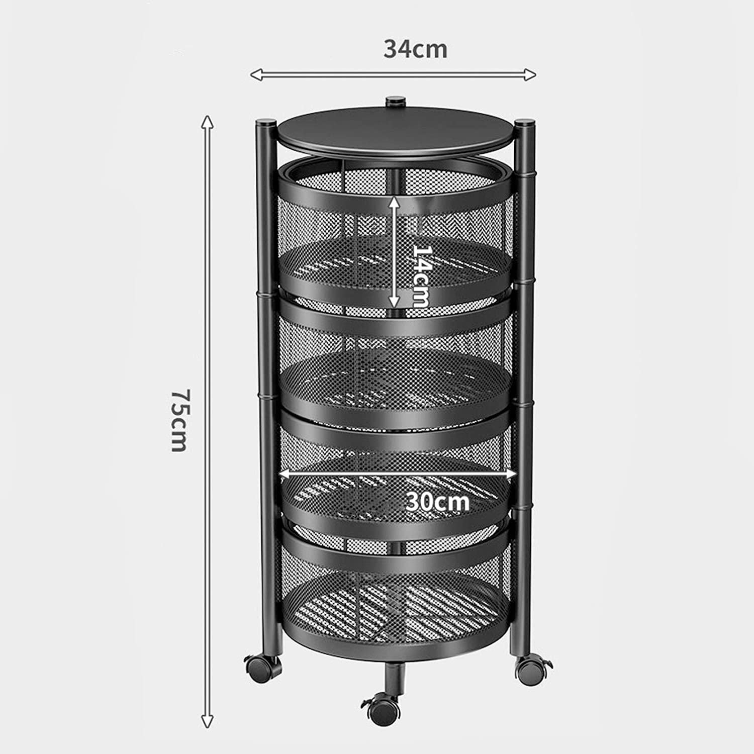 Vast Round Layered Shelf Storage Rack Kitchen Rotating Vegetable Rack Floor-Standing Multi-Layer Kitchen Storage Rack Household Storage Shelf For Kitchen Living Room(Size:4f). ☀【Multi-layer design & breathable】Modern, simple fashion, fits in all interiors, can be used as a kitchen shelf, shelf, dish organiser, microwave stand or other kitchen appliances. Encrypted breathable wire mesh basket keeps fruit and vegetables fresh, breathable top hollow, not easy to rot fruit and vegetables. ☀【With rotating basket】Rotating basket design, storage basket can be rotated freely, it is more convenient to receive Rotary, more convenient to receive, more versatile; the layer distance is enlarged on both sides of the fence protection to protect the goods does not slip, safer. ☀【360° free movement】 The top of the table can store items, no space is wasted and the solid material is not shaken. Place things smarter to meet your needs. With the universal 360° wheel for easy cleaning, free movement. Space-saving: This standing baker shelf provides more extra space for different purposes, e.g. for the kitchen office garage and more, and thus ensures a tidy and clear style. Widely used: It is a good choice to be your kitchen shelf, microwave stand, baker rack, spice rack organiser, kitchen worktop shelf. It is perfect for kitchen, living room, bedroom, bathroom.