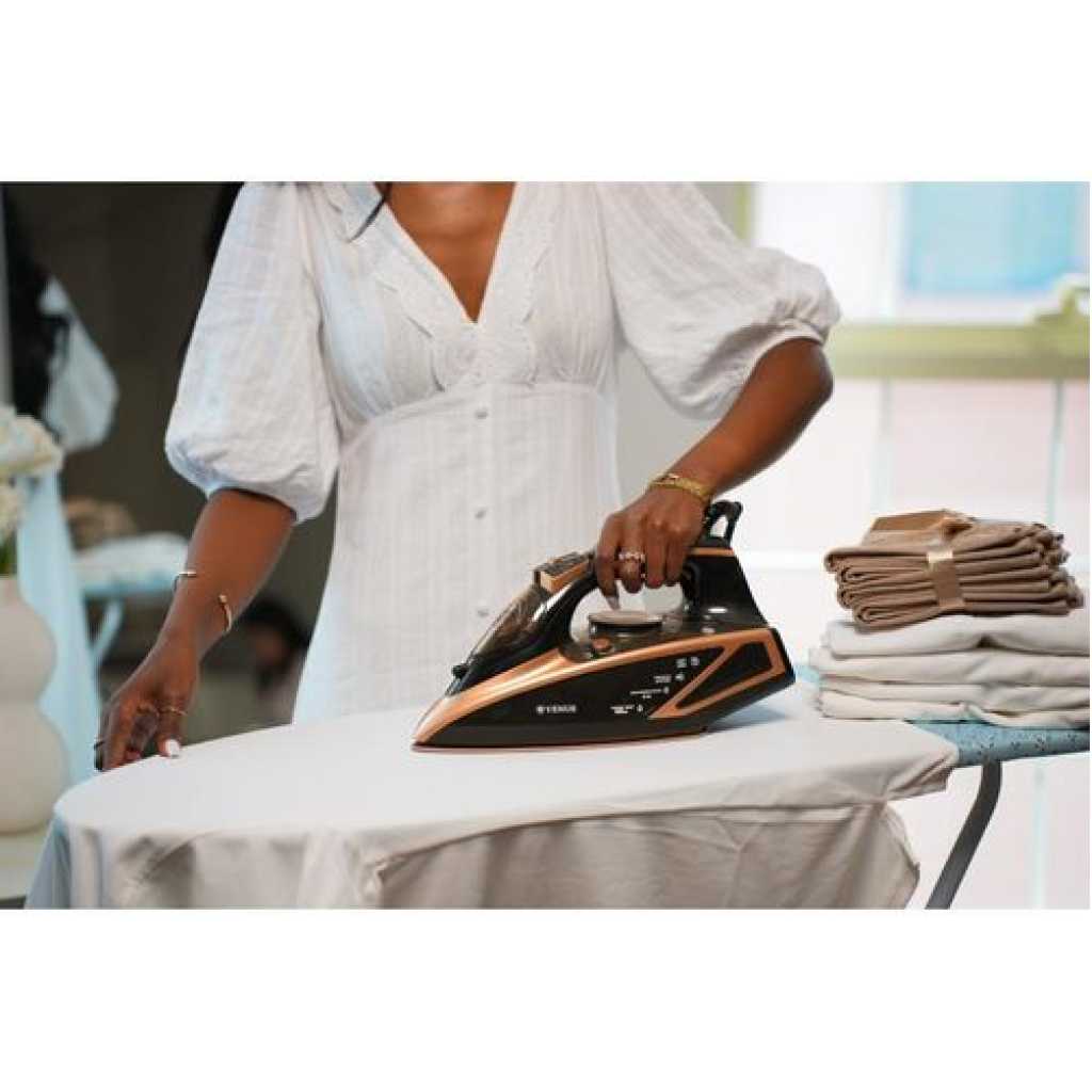 VENUS 2400W Power with Vertical & Steam Burst, Self Clean, Anti Drip, Ceramic Soleplate Steam Iron VSI 24 SB- Black Discover the VSI 24 SB Presenting the Venus high-performance steam iron, equipped with essential features for efficient ironing. The self-clean operation keeps the iron clean and functioning smoothly, while the water sprayer helps tackle stubborn wrinkles. For safety, it includes an auto shut-off feature when idle. The thick ceramic plate ensures even heat distribution and smooth gliding. Experience the burst of steam for tough creases and utilize the vertical steam function for hanging garments. The anti-drip function prevents water leakage, and the large 380 mL water tank minimizes interruptions. Operating at 220-240V, 50-60Hz with 2000-2400W power, it provides powerful and reliable performance for all your ironing needs.