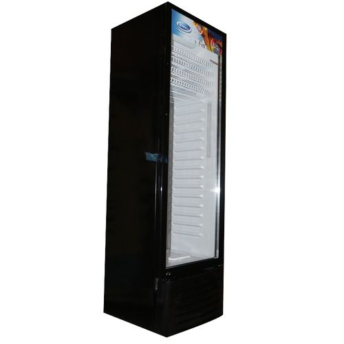 Venus 300-Litre Single Display Cooler VUSC300; Vertical Display Chiller, Single Door Showcase Refrigerator – Black. 300 Liters Gross Capacity Mechanical Temperature Control Compressor Cooling Fan for Even Cooling Distribution Double glass display door Lockable door Adjustable shelves Hidden End Cap Design Semi- Auto Defrosting