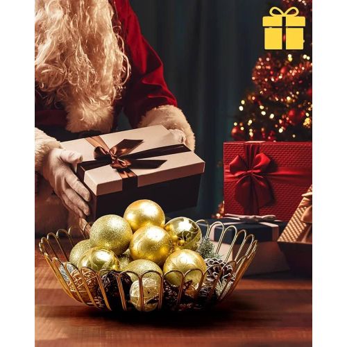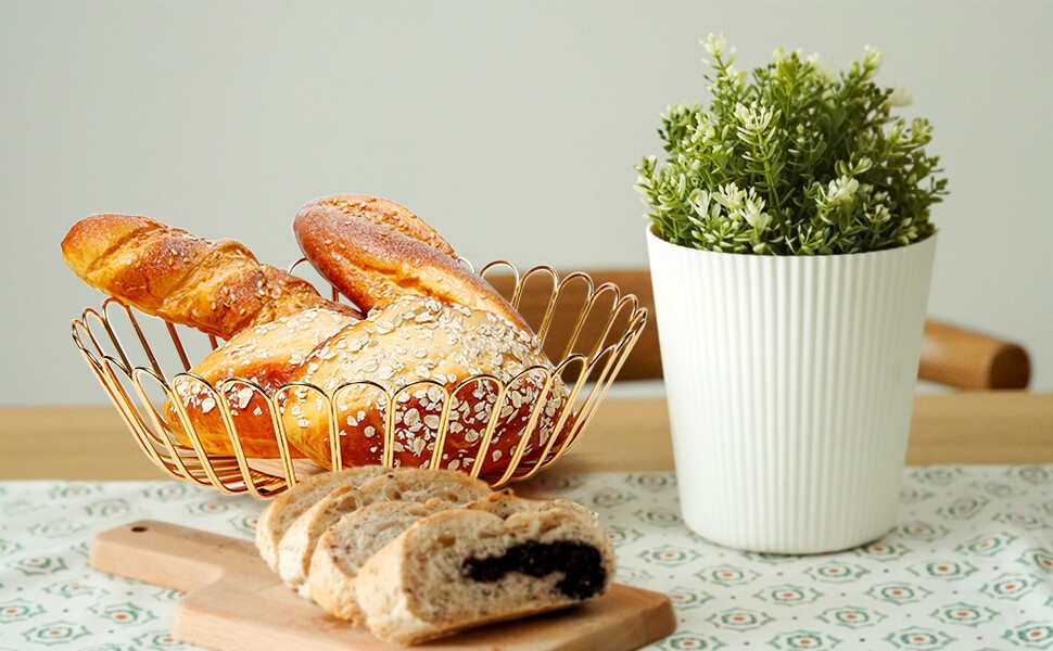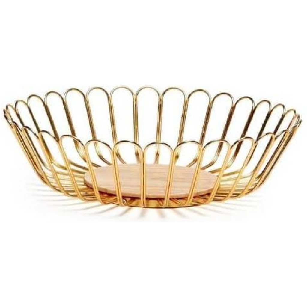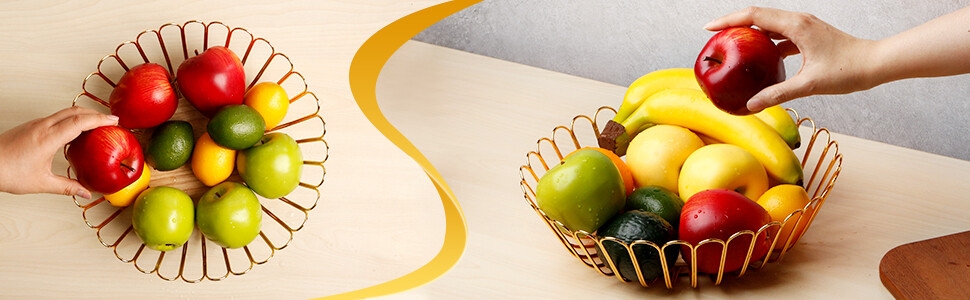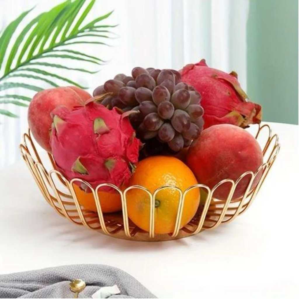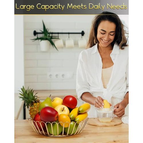 Product Description Grote opening fruitmand voor gemakkelijke toegang tot fruit Gold Fruit Bowl, 30x9cm Large Fruit Basket with Wooden Base, Metal, Modern Dessert Display Stand Dish Holder, Snacks Fruit Basket Bowl for Farmhouse Kitchen Breads Snacks Home Ornaments, 【1. Elegance in Wood】- Elevate your kitchen decor with our fruit basket featuring a natural oak base. The unique texture not only adds aesthetic appeal but also ensures an odorless and healthy storage solution. 【2. Spacious Design】- With dimensions measuring 26x9cm and a weight of 500g, our fruit basket boasts a generous capacity. Perfect for holding a variety of fruits and vegetables, it provides ample space for your culinary delights. 【3. Gentle on Surfaces】- Opt for added protection with our non-slip pad sticker. By easily applying this free accessory, you can confidently place the fruit basket on any countertop without the fear of scratches. Enjoy both style and functionality. 【4. Freshness at Its Best】- Experience optimal air flow through the modern hollow structure of our fruit basket. This design not only keeps fruits fresh for a longer duration but also encourages healthier eating habits, making it convenient for the whole family. 【5. Lasting Durability】- Choose reliability with our metal fruit bowl. Boasting high strength, corrosion resistance, and break resistance, this durable black fruit bowl ensures a long-lasting investment for your kitchen. Make a sustainable choice for your daily fruit display.