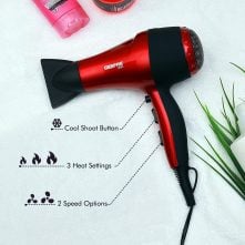 Key Features: Ultra strong fan for maximum airflow Advanced built-in tourmaline technology minimizes drying time Extra compact, lightweight and quiet. 2 speeds, 3 heat levels and immediate cold shot