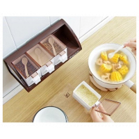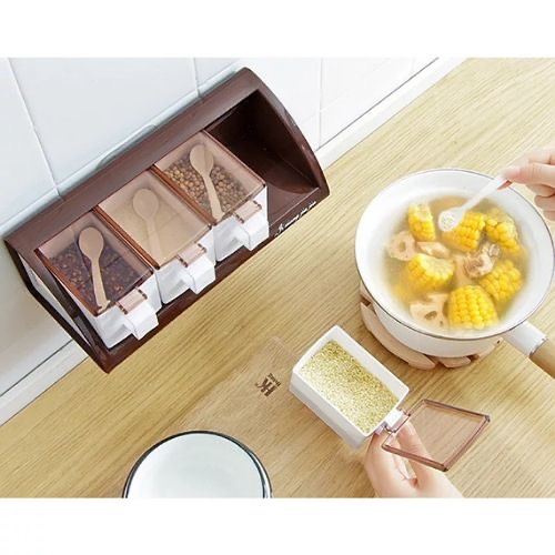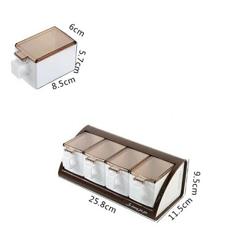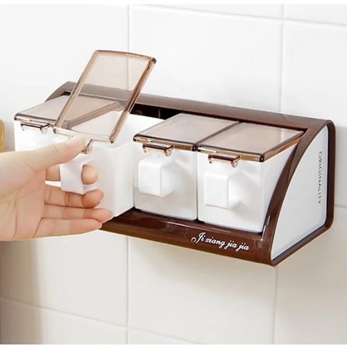 Key Features: Made of premium plastic material BPA-free, non-toxic and durable. Good tool for all kinds of condiments Smart way to organize your kitchen Press-type cover opening, easy to use. Comes with wall mountable seasoning box holder for more convenient use.