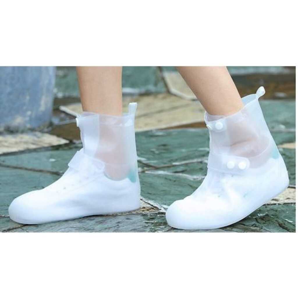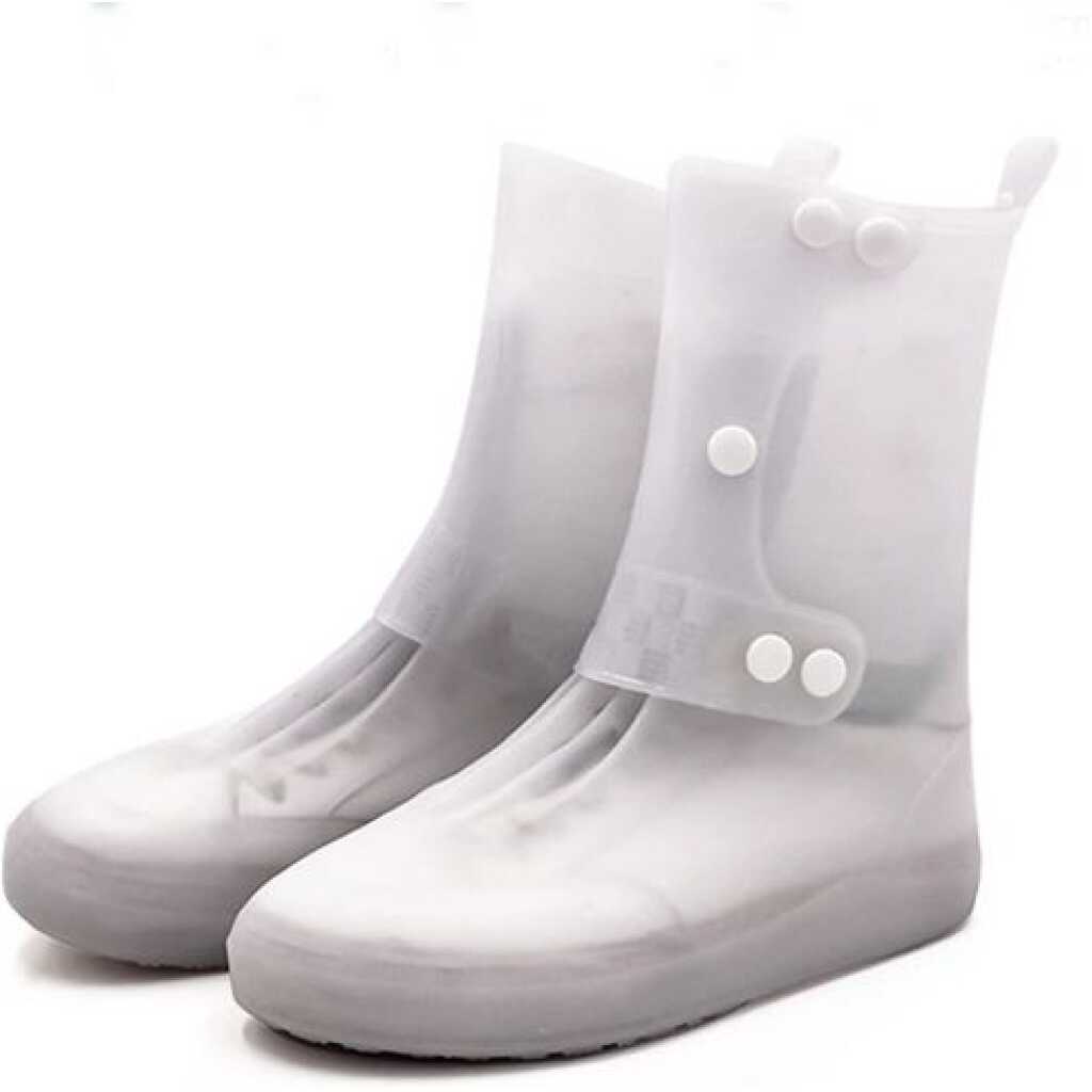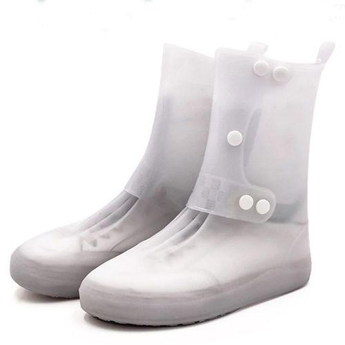 Waterproof Rain Shoe Covers, Reusable Foldable Non-Slip Ankle High Boots Outdoor Cycling Walking Hiking Shoe Protectors – White. Waterproof sturdy PVC material, seamless design keeping your beloved shoes and boots dry and clean, extending the lifetime of your footwear. The adjustable buckle with buttons makes it perfectly matched to the shoes, preventing rain from entering the shoe cover from the top. The soft outsoles are non-slip, the small sucker has excellent traction on wet and muddy ground, and there will be no chance of losing your grip on slippery surfaces. Perfectly suitable for people who have to go out on rainy/snowy days and outdoor activities such as camping, hiking, fishing, gardening etc; Item Name: Overshoes Material: PVC Quantity: 1 Pair Features: Unisex, Thicken, Waterproof, Anti-slip [Our Size 30-31]: Length: 23.5cm/9.25″ (Approx.) [Our Size 32-33]: Length: 24cm/9.44″ (Approx.) [Our Size 34-35]: Length: 25cm/9.84″ (Approx.) [Our Size 36-37]: Length: 26cm/10.23″ (Approx.) [Our Size 38-39]: Length: 27.5cm/10.82″ (Approx.) [Our Size 40-41]: Length: 29cm/11.41″ (Approx.) [Our Size 42-43]: Length: 30.5cm/12.00″ (Approx.) [Our Size 44-45]: Length: 32cm/12.59″ (Approx.)Pair of Overshoes Waterproof sturdy PVC material, seamless design keeping your beloved shoes and boots dry and clean, extending the lifetime of your footwear. The adjustable buckle with buttons makes it perfectly matched to the shoes, preventing rain from entering the shoe cover from the top. The soft outsoles are non-slip, the small sucker has excellent traction on wet and muddy ground, and there will be no chance of losing your grip on slippery surfaces. Perfectly suitable for people who have to go out on rainy/snowy days and outdoor activities such as camping, hiking, fishing, gardening, etc;