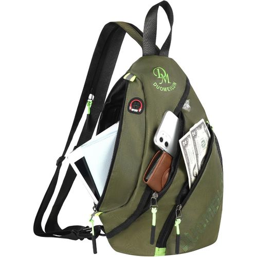 Waterproof and Durable: This backpack is made of polyester material with SBS zipper. It is waterproof, easy to clean and anti-friction to effectively prevent tearing, wetting and tearing. High quality smooth zipper for easy access Large Capacity: stylish backpack size: 4.2*10.6*15.7IN. You can put your notebook, cell phone, book, umbrella and cup in it. You can even use it to travel and pack your shoes and clothes. There is a net bag on the side to hold a water cup for easy drinking. Shoulder/Crossbody/Hand Bag: Our versatile backpacks can be carried on both shoulders (unzipper the shoulder strap) or crossbody (zip the shoulder strap up), and there is a handle at the top of the backpack for you to carry around as a handbag. The length of the adjustable shoulder strap is 31-40 inches and can be adjusted to a comfortable position according to personal preference Headphone jack + Internal pocket:There is a headphone jack on the shoulder bag for listening to music anytime. The large bag has a hidden pocket that can safely store items such as bank cards or passports, reducing the risk of theft. Protect your ID card, bank card or mobile phone from being scanned and stolen. Multi-purpose Sling Bag: Weighing just 0.66 LBS, this sling bag is lightweight and comfortable to carry. Can be used as sling bag, sling backpack, crossbody bag, hiking backpack, chest backpack, travel bag, leisure backpack, shoulder bag, very suitable for travel, fitness, hiking, camping, cycling, day trip, office and other occasions. It is a good travel gift.