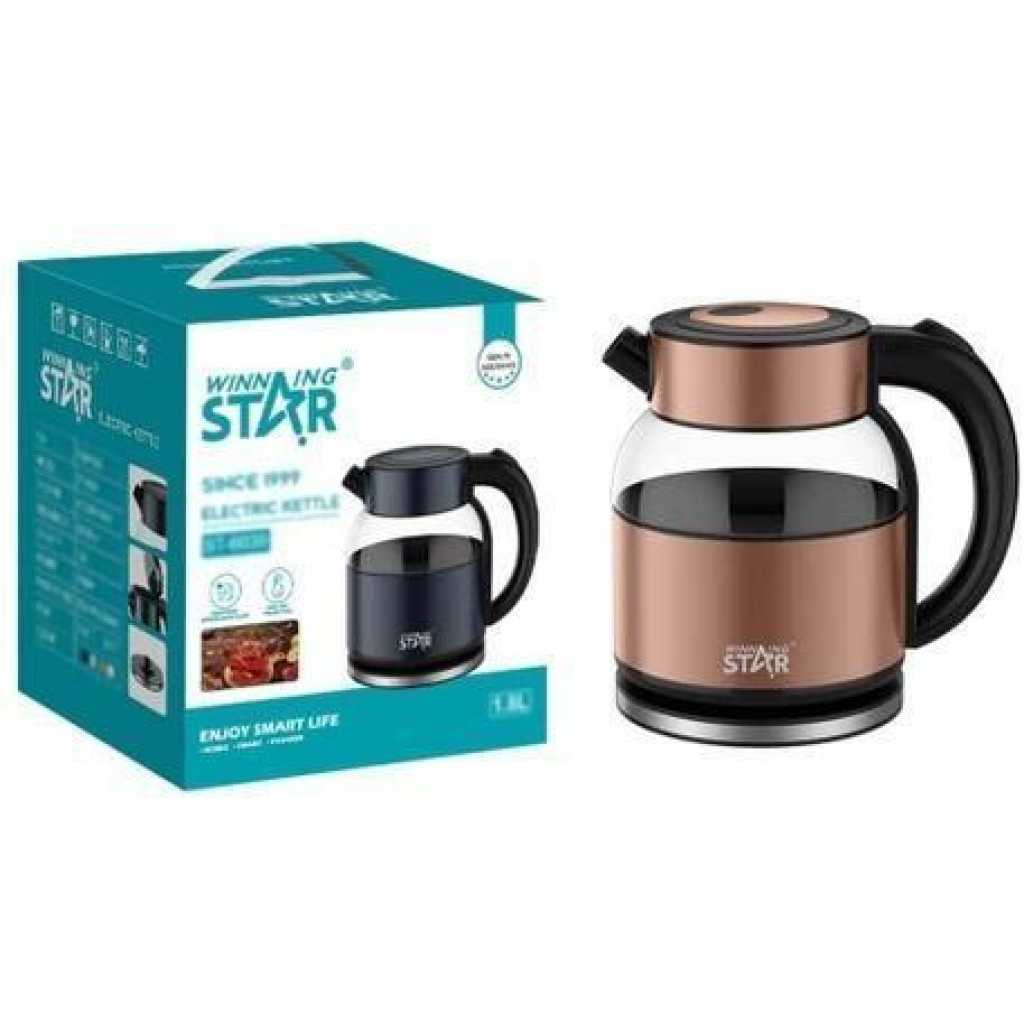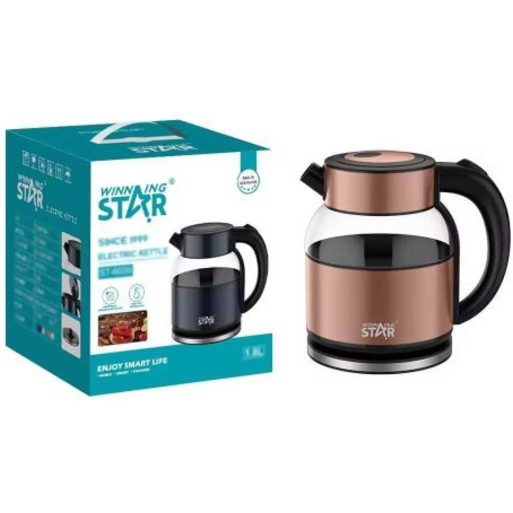 Enjoy rapid and safe boiling with the Winning Star 1.8L Instant Heat Glass Electric Kettle , designed for home, office, and kitchen use . With its sleek glass design, powerful heating element, and user-friendly operation , this kettle ensures a seamless boiling experience every time