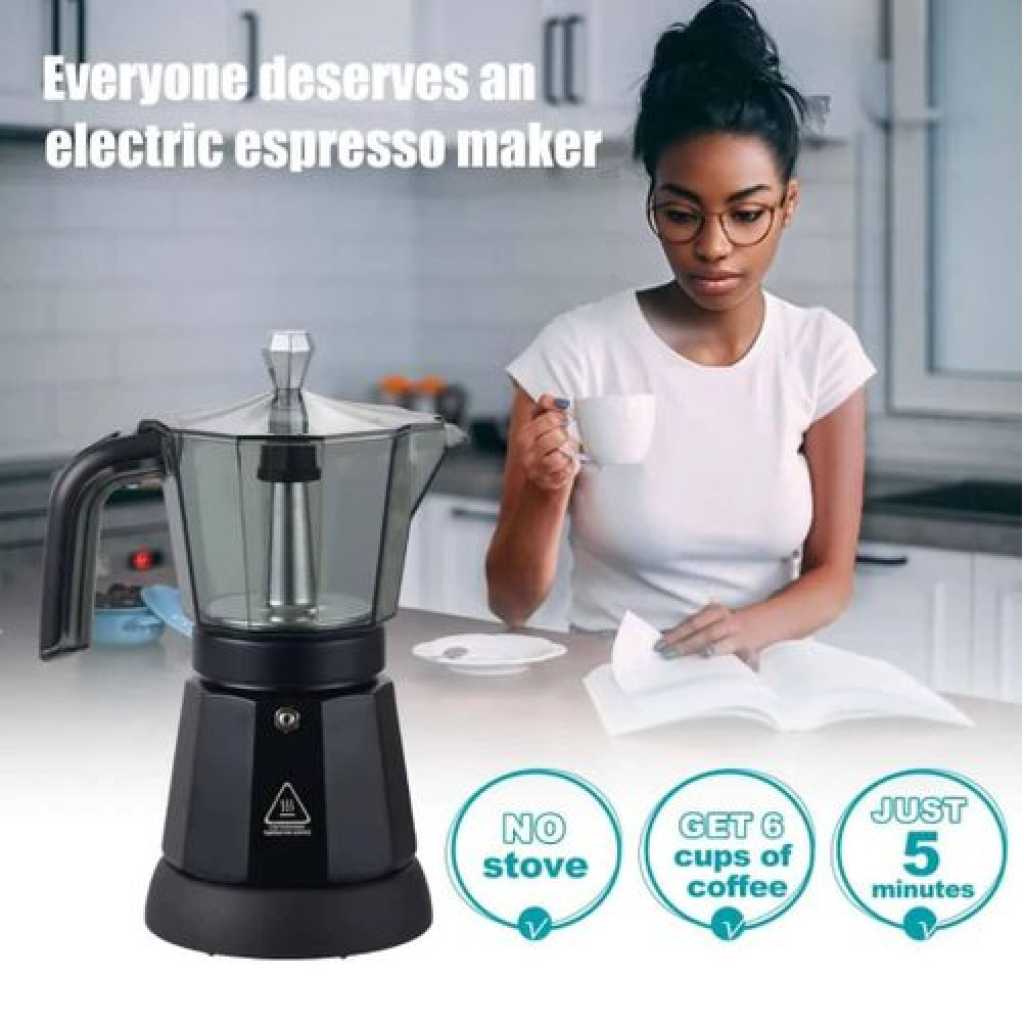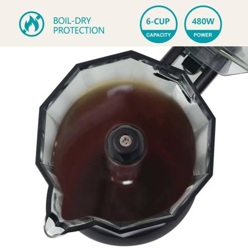 Key Features: Durable: High quality ABS, acrylic, silicone, aluminium alloy and muffle paint make this espresso machine stable, heat-resistant, shockproof, wear-resistant and corrosion-resistant. The product is heat-resistant, shockproof, wear-resistant and corrosion-resistant, so it can stay beautiful and practical for a long time. High efficiency: 480 W power, the high-quality heating element, the principle of distillation extraction pressure and the maximum pressure of 2.5 bar can achieve even heating and delicious coffee for you in a short time. 【Suitable Capacity】: The total capacity of 12.68 oz can meet the needs of 1-6 people at the same time and is a good choice for families, so you can make delicious coffee with your family and friends at home. The 10 x 19 cm mini design, the weight of 2.49 lbs, and the separation design of the pot and the bottom make it easy to store and store. Safety protection: the comfortable, anti-scald and non-slip handle that solves the common problems of grip and finger burns, the double leak protection and the safety valve on the handle. The double leak protection and the safety valve on the surface, which can protect you from the accumulation of high pressure, ensure safety, so you can use it with confidence. Practical and simple: Complete accessories, detailed English instructions, a pilot light, a one-touch button and a simple structure allow complete accessories, detailed English manual, indicator light, a one-touch button and a simple structure allow you to install and put the device into operation in no time. The transparent control panel on the top allows you to view the internal situation and make settings in a timely manner.