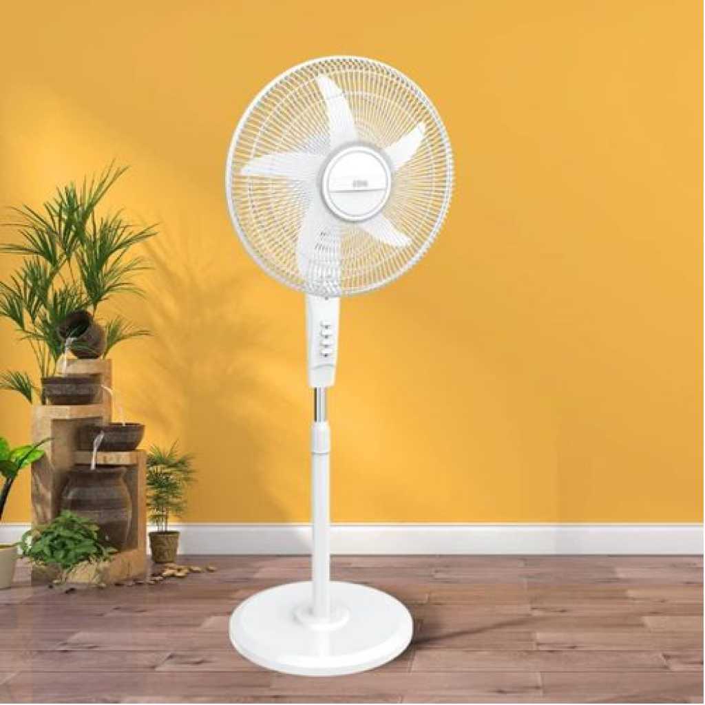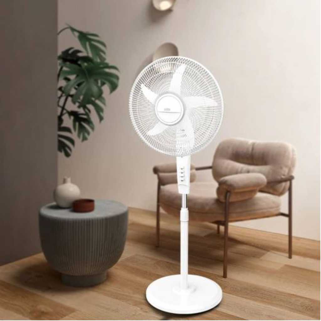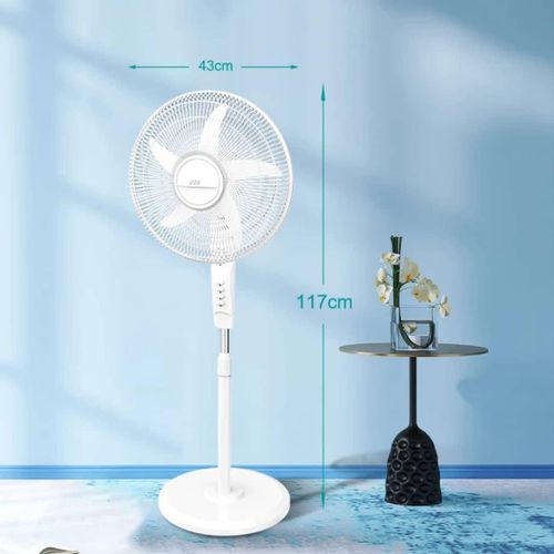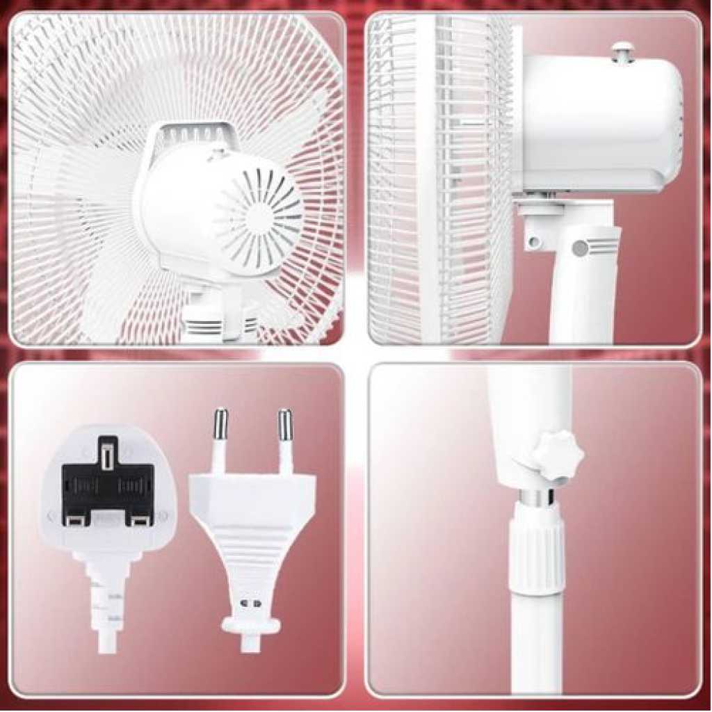 16″ Stand Fan with Remote Control– 3 Mode/Speed, 5 Leaf Blade Wide Oscillation, Adjustable Height & Tilt Setting With Led Display | 7.5 Hours Timer 3 QUIET, ENERGY-EFFICIENT & 3 SPEED – Allows this free-standing pedestal to provide a cooling breeze around the home or home office. Ideal for the bedroom, living room, or near your desk. Low, medium and high speed make this well suited around the whole house. ADJUSTABLE HEIGHT & TILT-BACK HEAD – Gives you the ability to direct the cooling air right where you need it. The fan’s stand or pedestal adjusts up or down changing the fan’s height while the tilt-back head lets you aim the air towards the floor, ceiling, or anywhere in between. WIDESPREAD OSCILLATION – This fan head moves from side to side to blow air throughout the area. Oscillation allows for the fan to provide ventilation for a wide area. BUILT-IN TIMER – The ergonomically designed you can control fan speed, timer, and power automatically easily. While the built-in timer is programmable to shut the fan off automatically after 7.5 hours.