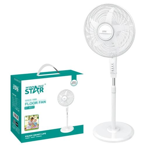 WINNING STAR AC220V 40W 16 Inch 5-Leaf Electric Floor Standing Fan with Aluminum Motor 3-Speed Shaking Head Floor Cooling Tower & Pedestal Fan 1.5m Copper Charging Cable BS Plug