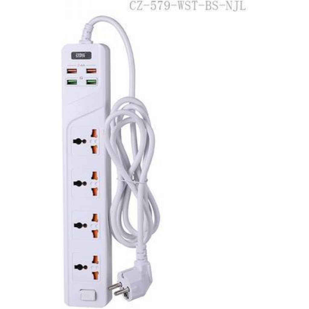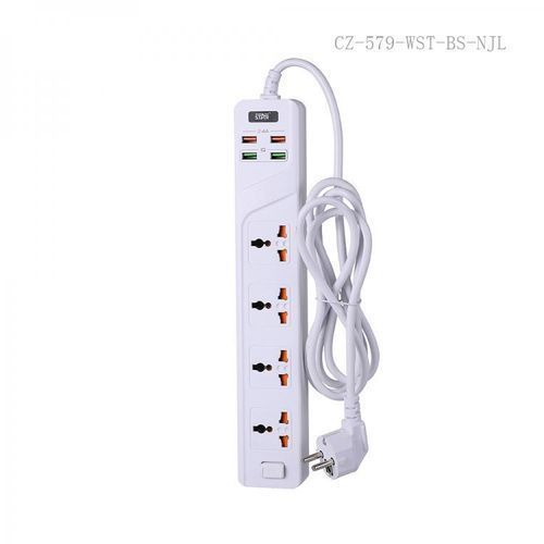 4-outlet extension lead is also a surge protector with a 300cm power cord,offer a variety of charging options for electronics and mobile devices, bringing an ideal solution for your power supply needs. Charging technology enables each USB port to detect and deliver an ideal input current of up to 2.1A (the actual current is decided by the demand for the devices). The extension lead with usb slots also with an on/off switch allows control for AC outlets and USB ports, while sliding safety covers protect your children and pets from each unused outlet. Sleek rectangular design, ideal for home and office. 350-joule surge protector, protects you devices from power spikes. Protected against over voltage, over current, overload, short-circuiting, and poor contact. Product Description Name Socket Packing PVC bag packing Voltage AC 110V-250V Frequency 50/60Hz Power 10A/2500W Material PP Flame Retardant And Fireproof Material, One Whole Connected With Copper, With Safety Door, Pure Copper Power Cord, Length 3 M (Total Length) Function