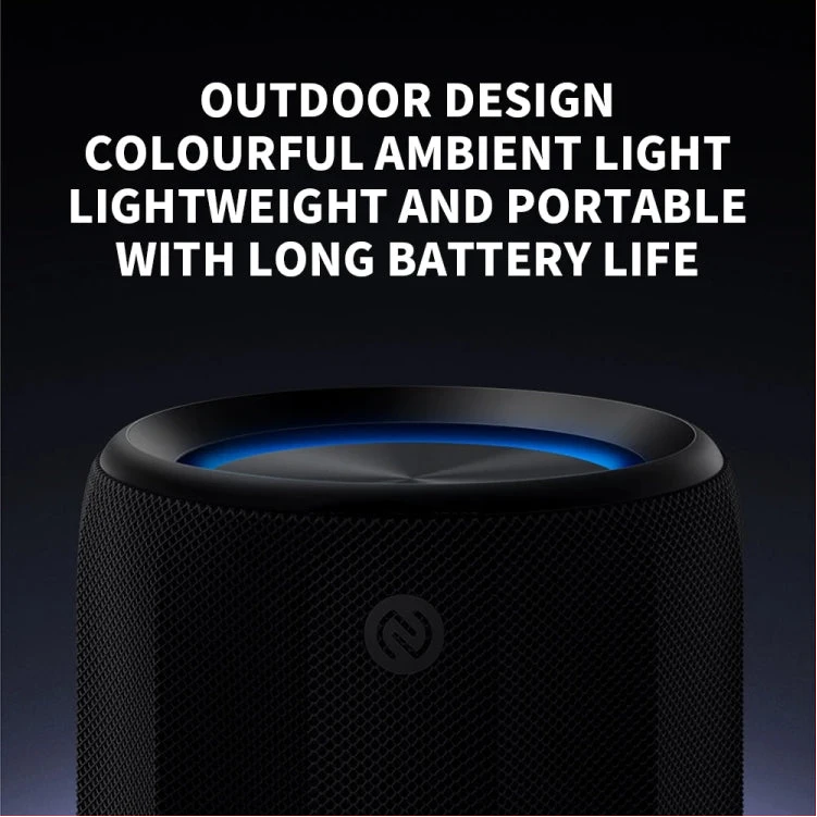 Features 1. Equipped with Bluetooth 5.3 technology, fast connection and stable transmission. 2. The top RGB atmosphere ring light strip, music sounds, sound and light are linked, full of atmosphere. 3. IP67 dustproof and waterproof design, the body is made of woven mesh, wear-resistant and durable, and the bottom of the body is shock-absorbing soft rubber to alleviate the damage to the body caused by sudden impact. 4. Built-in 2000mAh battery, full power supports 11 hours of music playback, long-lasting battery life. Parameters 1. Product size: 10.3cm x 7.3cm x 7.3cm 2. Net weight: 330g 3. Bluetooth: 5.3 4. NFC: Support NFC connection, support music seamless relay 5. Rated power: 3W x 2 6. Battery capacity: 2000mAh 7. Charging interface: Type-C 8. Input parameters: 5V 2A Package List Speaker x 1 USB-C to USB-C charging cable x 1 User manual x 1