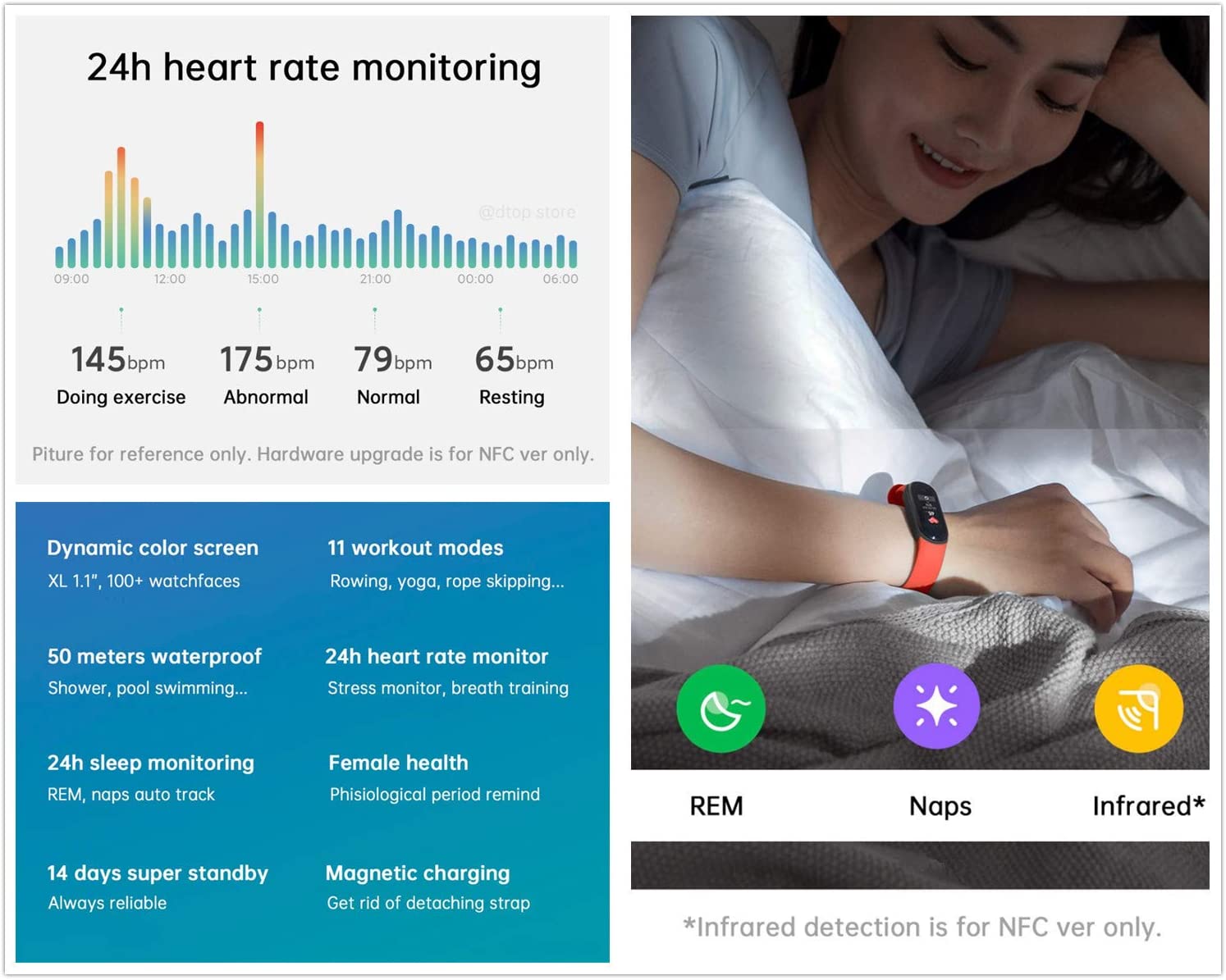 Key Features: Upto 14 Days Battery Heart Rate Monitor Sleep Tracker Activity Tracker 5 ATM 50 m water resistance and swimming tracking Pedometer Sleep counter