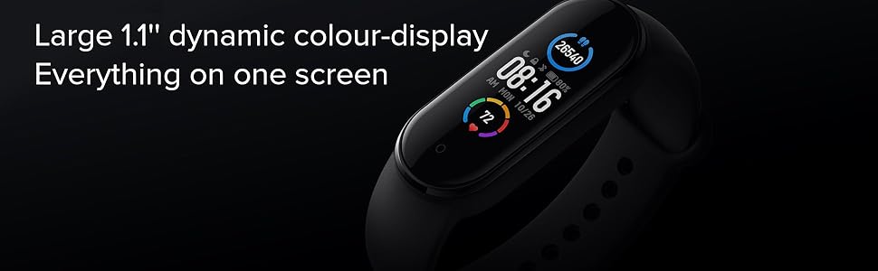 Xiaomi Mi Band 5 Black Health and Fitness Tracker, Upto 14 Days Battery, Heart Rate Monitor, Sleep Tracker, Activity Tracker, 5ATM 50 m Water Resistance and Swimming Tracking, Pedometer, Sleep Counter