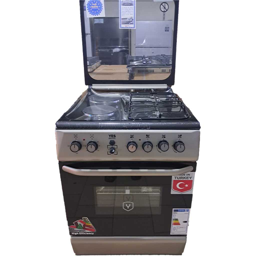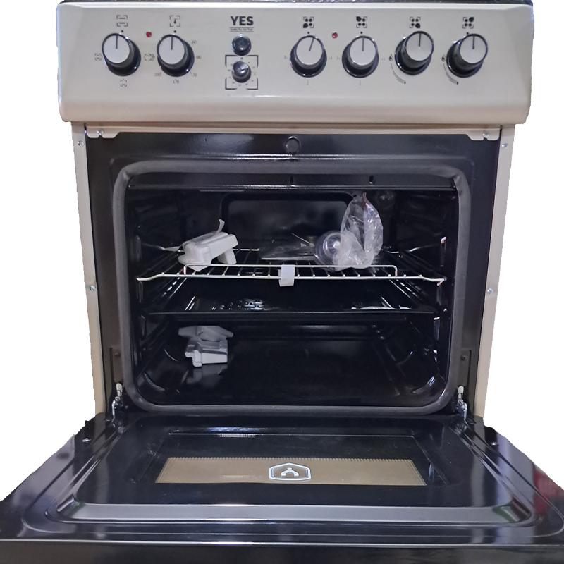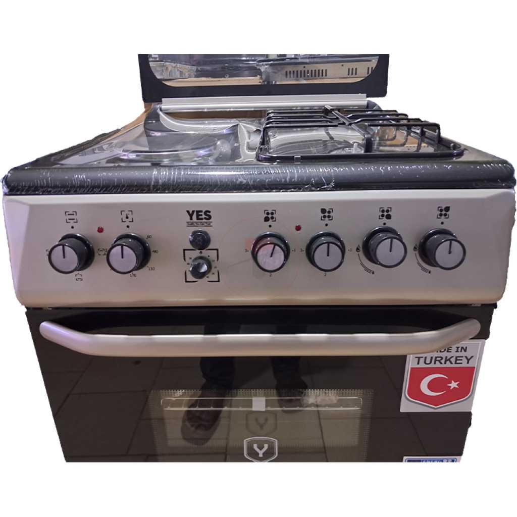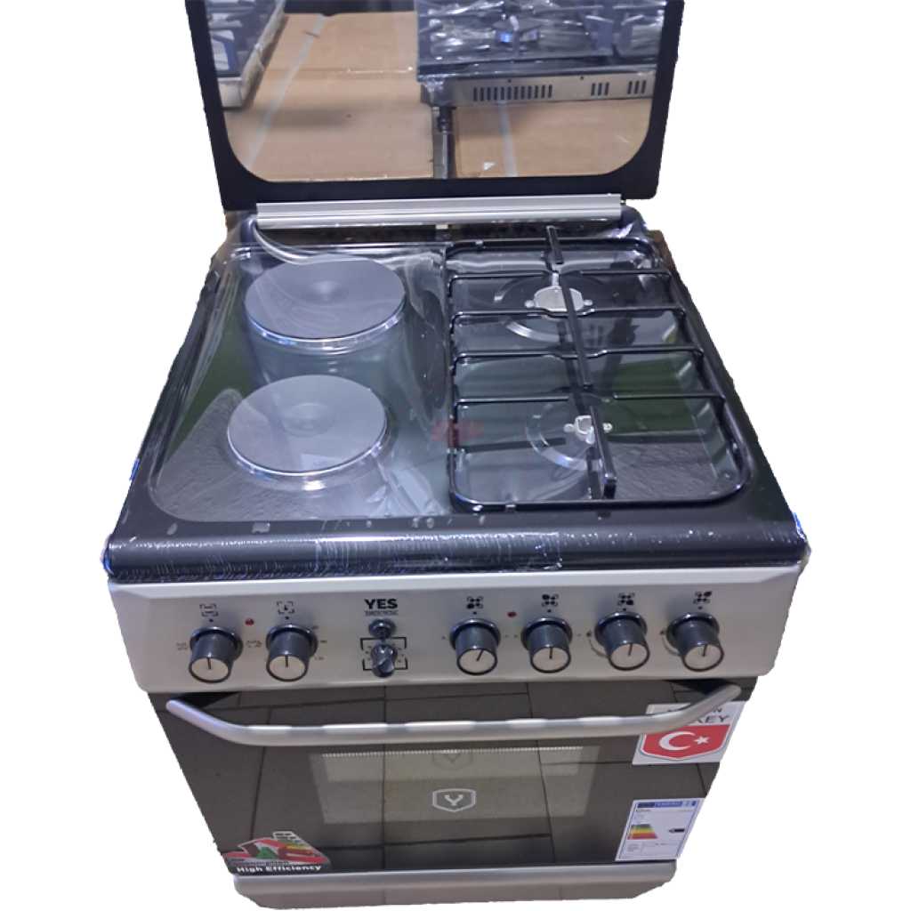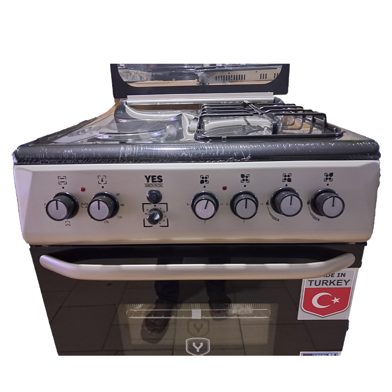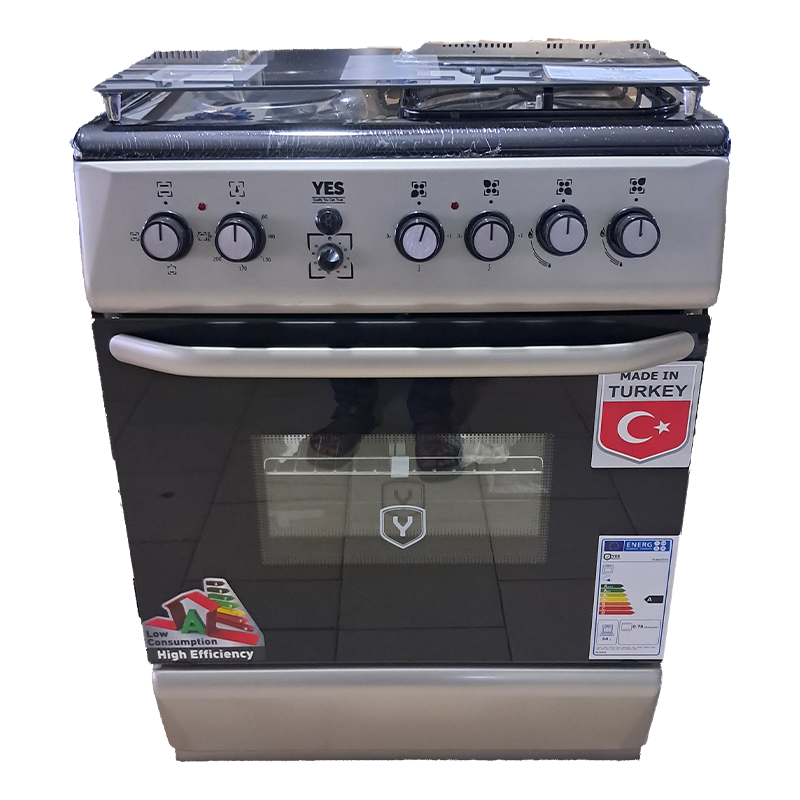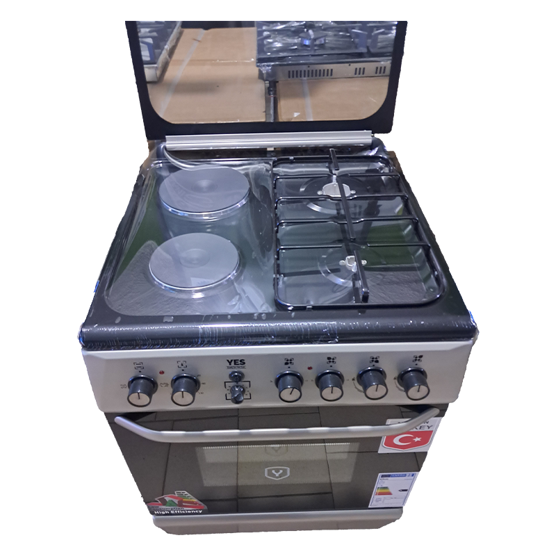 Key Features: YES Cooker 2- Gas Burners + 2 Electric Plates, 60x60cm YS-6622GTG; Gas Oven & Grill, Auto Ignition, Top Glass – Silver. 60Cm By 60 Cm 2 Gas Plates & 2 Electric Plates Free Standing Oven 60X60 Gas Oven With Light Stainless Steel Top Cover Self Ignition