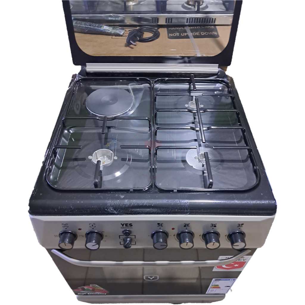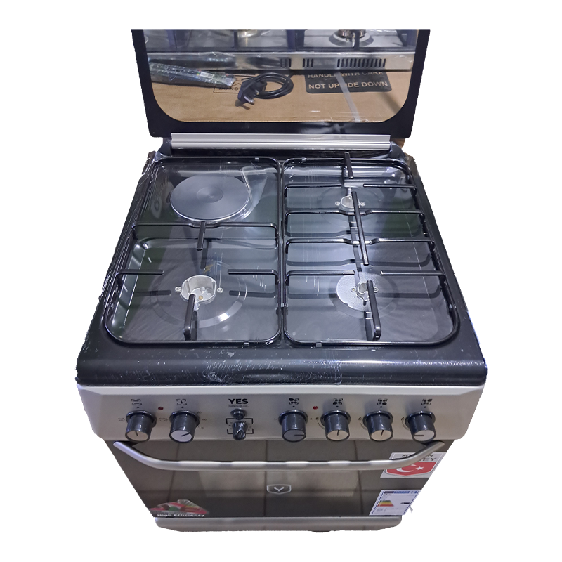 Key Features: YES Cooker 3- Gas Burners + 1 Electric Plate, 60x60cm YS-6631GTG; Electric Oven & Grill, Auto Ignition, Top Glass – Silver. 60Cm By 60 Cm 3 Europool Gas Burners & 1 Rapid Electric Plate Free Standing Oven 60X60 Electric Oven & Grill With Light Stainless Steel Top Cover Push Button Auto Ignition 2 Europool Gas Burners Oven Lamp and Timer Cool Door Oven Tray Adjustable Feet Heavy Duty Control Panel Easy to clean 1 Year Warranty