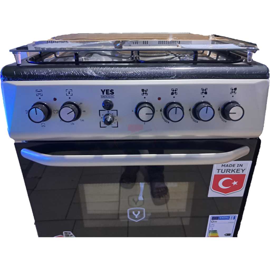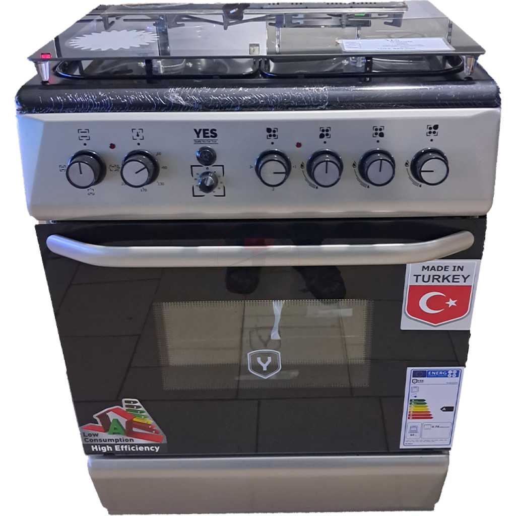 YES Cooker 3- Gas Burners + 1 Electric Plate, 60x60cm YS-6631GTG; Electric Oven & Grill, Auto Ignition, Top Glass – Silver. 60Cm By 60 Cm 3 Europool Gas Burners & 1 Rapid Electric Plate Free Standing Oven 60X60 Electric Oven & Grill With Light Stainless Steel Top Cover Push Button Auto Ignition 2 Europool Gas Burners Oven Lamp and Timer Cool Door Oven Tray Adjustable Feet Heavy Duty Control Panel Easy to clean 1 Year Warranty