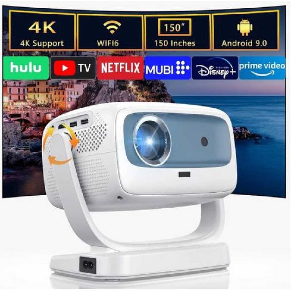 200-Lumen Brightness: Delivers vibrant and clear images, making it suitable for both indoor and outdoor use. 720p HD Resolution: Provides high-definition visuals for a captivating viewing experience, perfect for movies, presentations, and gaming. Auto Focus: Automatically adjusts focus for optimal image clarity, ensuring hassle-free setup and viewing. Surround Sound: Equipped with high-quality surround sound technology for an immersive audio experience that enhances your media. USB Playback: Easily connect USB devices to play videos, music, and photos directly from your storage, adding convenience to your entertainment options. OverviewThe HT03 Android Projector is a powerful multimedia device designed to deliver an immersive viewing experience. With 200 lumens of brightness and 720p HD resolution, it projects clear and vibrant visuals, perfect for home theaters, presentations, or gaming. This projector features auto focus for hassle-free setup and sharp image quality, while its surround sound speaker enhances the audio experience. Equipped with Wi-Fi connectivity, it allows you to stream content seamlessly, and its USB playback function adds versatility for offline use. The HT03 also includes multiple input options, such as HDMI and USB, making it a versatile solution for all your entertainment and presentation needs. This projector is equipped with a 360° rotatable stand, allowing you to project from virtually any angle. Whether you’re watching movies on a wall, enjoying a cozy bedroom setup, or hosting an outdoor screening, this design ensures ultimate flexibility. It supports both tabletop and ground-level setups, adapting seamlessly to different spaces without the need for additional mounts or stands Achieve sharp, clear visuals in seconds with electric focus. The projector also features manual keystone correction (±50°), letting you easily adjust the screen for distortion-free projection. With its 50%-100% zoom functionality, you can resize the image without moving the projector, ensuring an optimized viewing experience for various room sizes and screen setups Enjoy crystal-clear visuals with native 1080P resolution and enhanced brightness powered by 400 ANSI lumens. The addition of HDR10 delivers richer colors and deeper contrast, making bright scenes more vivid and dark scenes more immersive. With a projection size of up to 200 inches, this projector is perfect for watching movies, gaming, or viewing photos with remarkable detail and clarity The projector features advanced Bluetooth 5.0 technology, enabling seamless connections to external audio devices like Bluetooth speakers or headphones for an upgraded sound experience. Additionally, you can pair your smartphone to use the projector as a high-fidelity audio device. However, please note that the Bluetooth functions for input (audio streaming) and output (sound playback) cannot be used simultaneously. Unlike misleading brightness claims, this projector adheres to the ANSI standard, delivering a true 400 ANSI lumens. Perfect for moderately lit environments, the projector ensures consistent and vivid visuals, offering confidence in its performance. This commitment to honesty makes it a trustworthy choice for both home theaters and outdoor entertainment With 2.4G/5G dual-band WiFi and Bluetooth 5.0, this projector ensures stable streaming and easy pairing with various devices. Compatible with smartphones, laptops, TV sticks, USB drives, and gaming consoles like Xbox, Switch, and PS5, it delivers endless entertainment possibilities. Use its two-way Bluetooth functionality to connect external audio devices or stream audio from your mobile device, making it a versatile addition to your setup Designed with an IPX5 full-sealed optical engine, this projector effectively blocks dust, ensuring long-lasting performance and clear visuals over time. Its efficient heat dissipation system reduces noise during operation, making it perfect for extended use at home or in outdoor settings. This durable design guarantees reliability and longevity, meeting the needs of any projector enthusiast This projector is backed by lifetime technical support and a reliable warranty, giving you peace of mind. Whether you’re a casual user or tech enthusiast, the dedicated support team ensures you get the most out of your projector. It’s a dependable investment for long-term entertainment and productivity needs.Regarding the remote control, we offer an additional guarantee that if the remote control is damaged or lost within one year, we will provide you with a brand new remote control to support your use