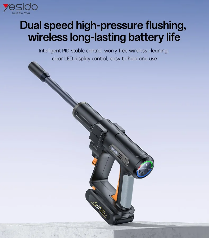 YESIDO VC18 High Pressure Washer Gun 2 Gears Adjustable Cordless Car Cleaner with LED Display